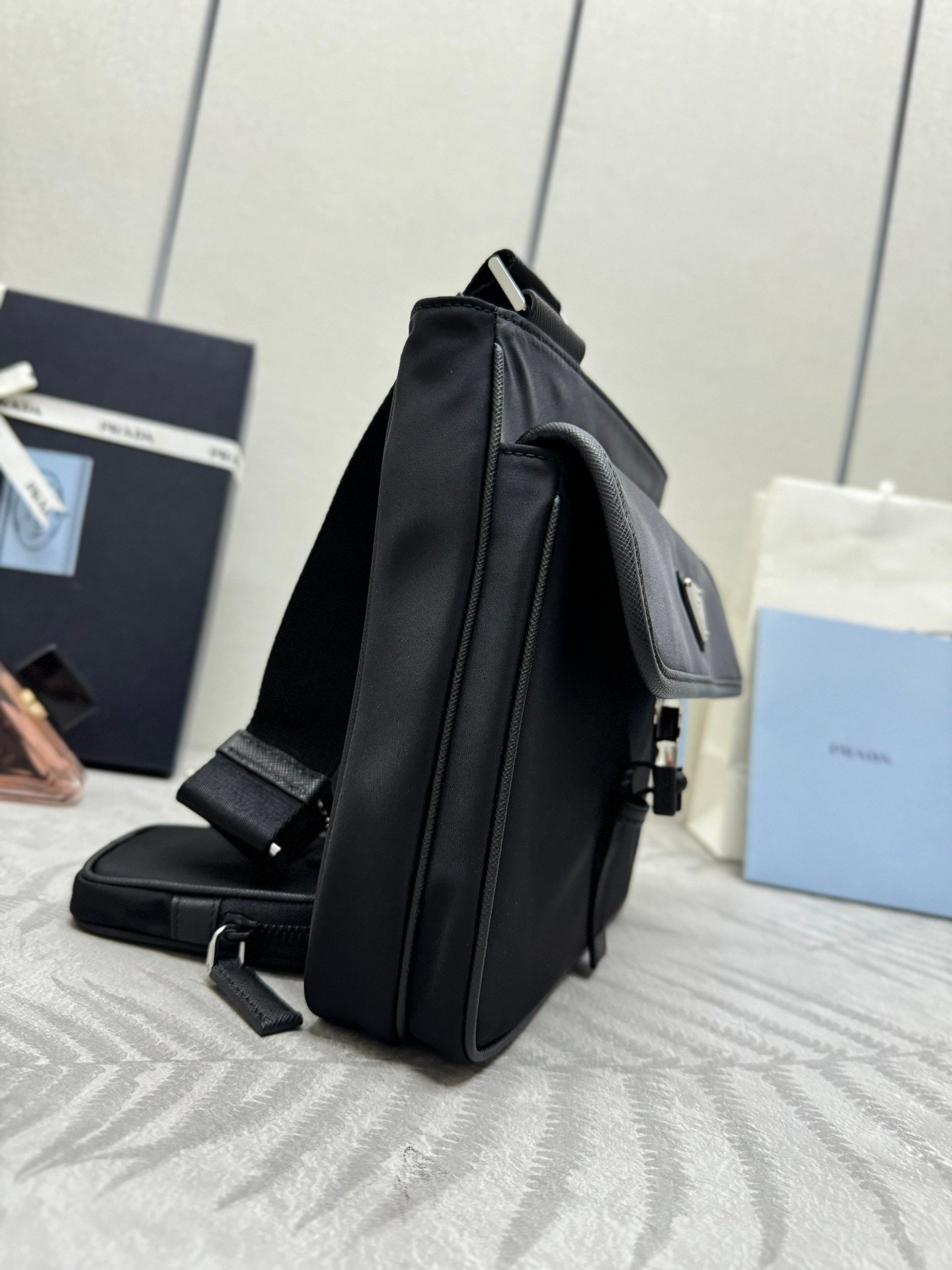highly representative of the nylon triangle label elements Simple up-to-date triangular label decorations, and does not compress the space , the grid layer is much more 😘 At the same time the shoulder straps are also hung with a small pendant pouch, it can also be hung on the trouser head when the accessory echoes 👍👍 Overall understated luxury and matchmaking, the commuting bag type can be casual or cool! 😎 back up and practical and stylish, super tasteful, permanent and timeless 3 in 1