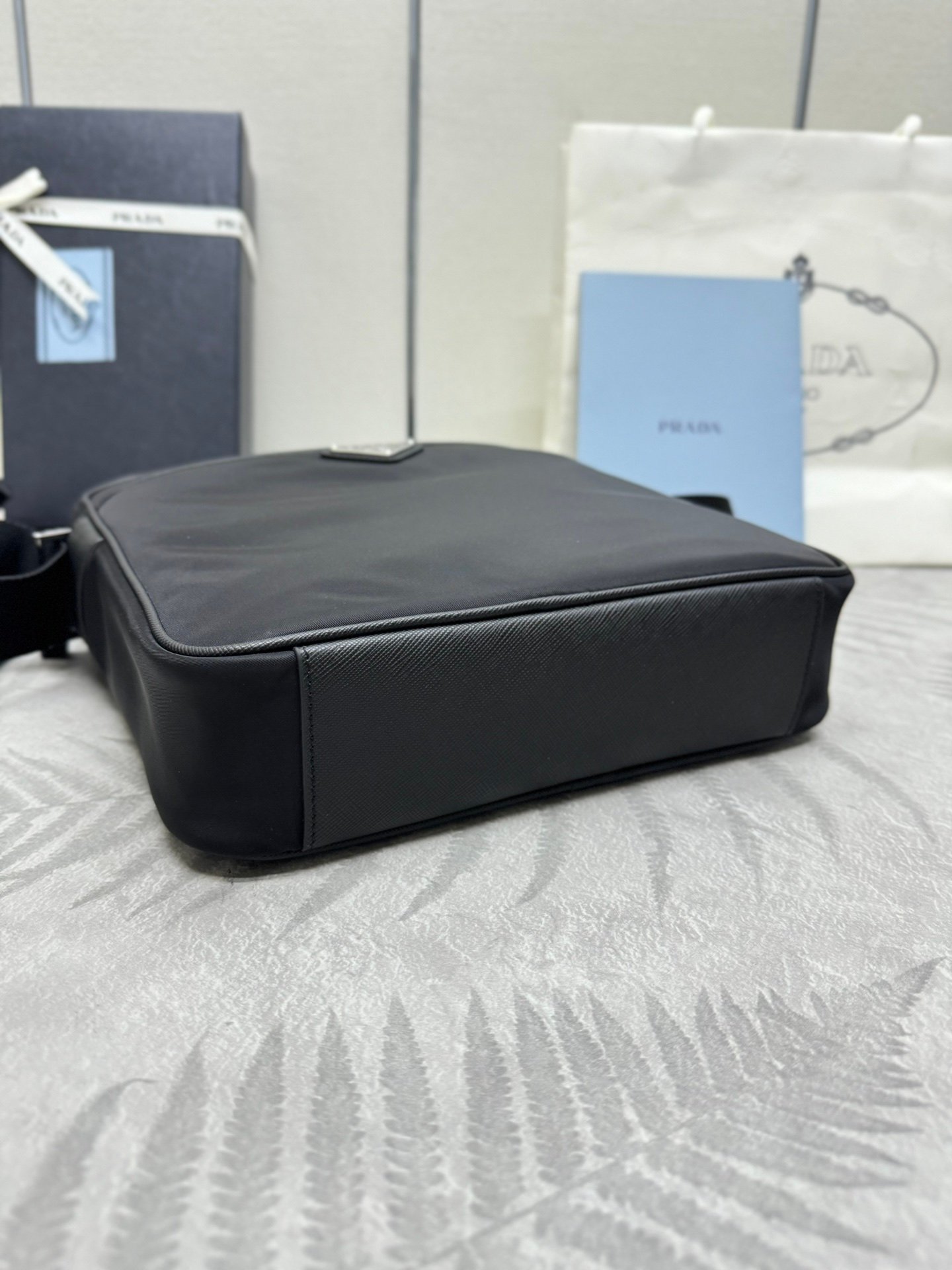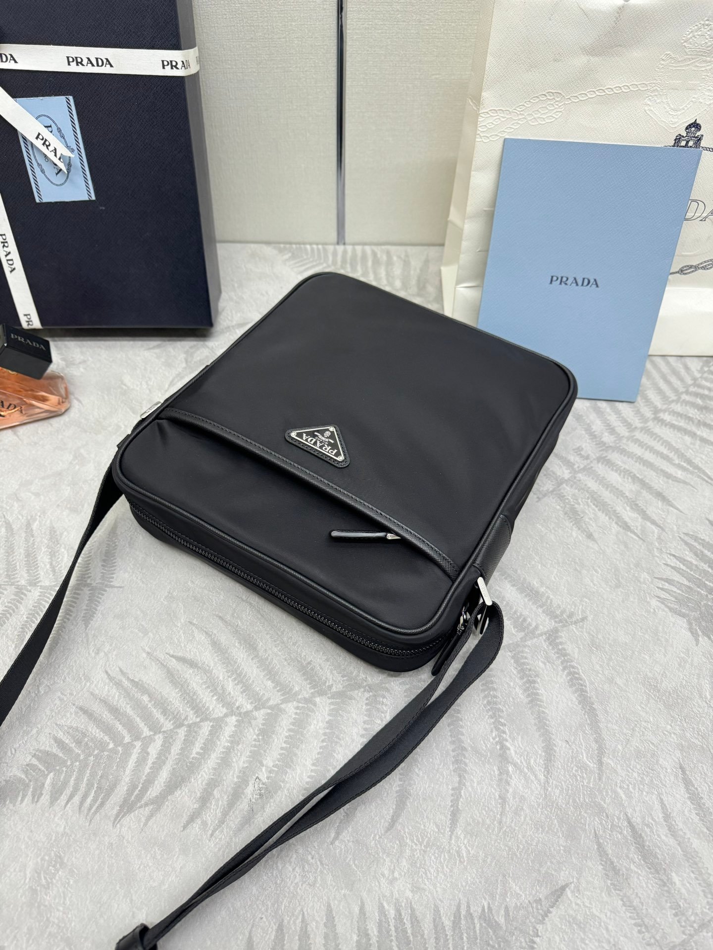 Classic Crossbody 2VH002 Messenger Bag, Nylon and Saffiano Leather Trim, Adjustable Nylon Shoulder Strap , Polished Steel Fittings and Black Titanium Zippers , Compartments galore, one zippered compartment Front and back two zippered outside pockets, a must have for men.