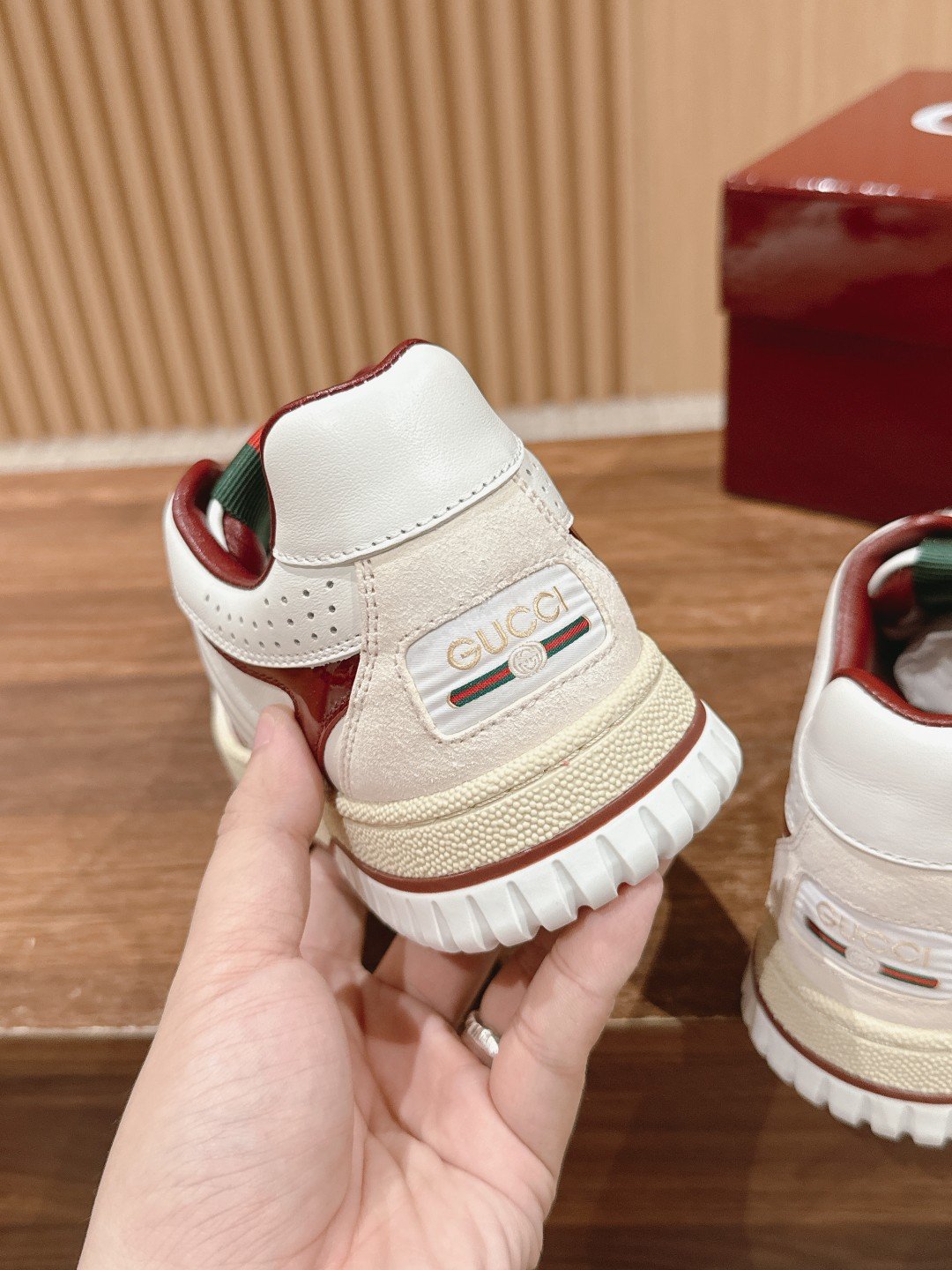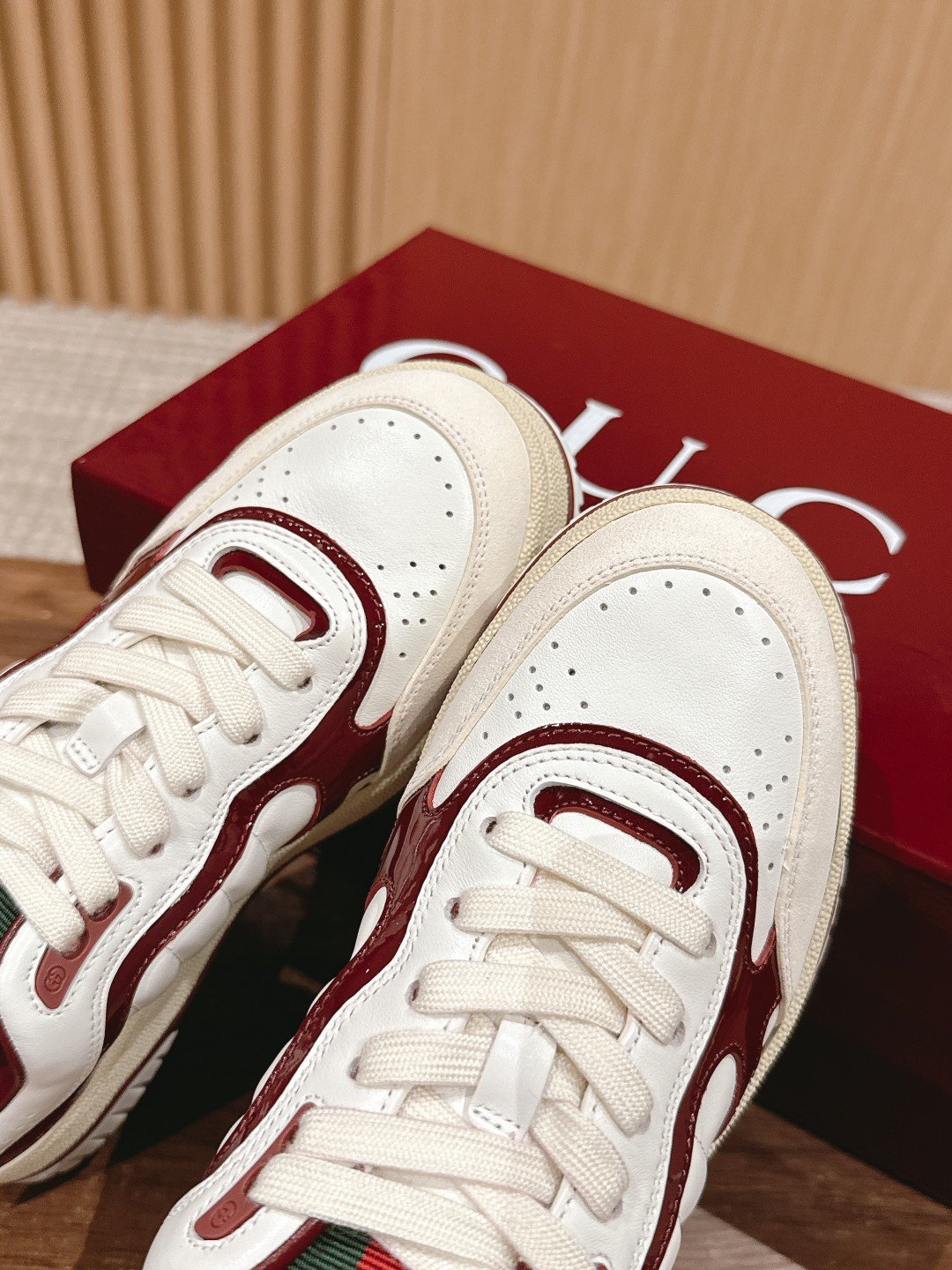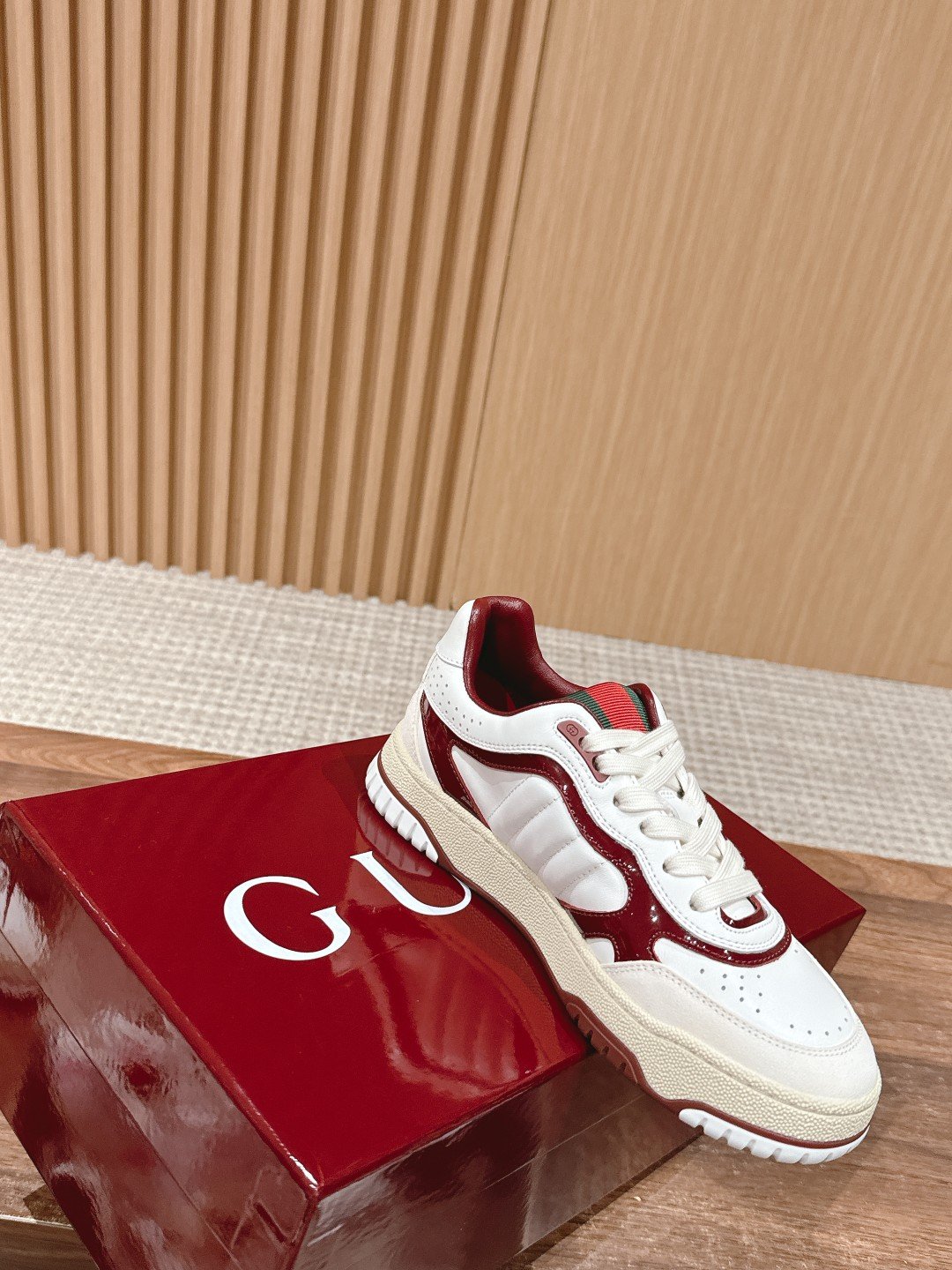 #couple size [burgundy] 𝐆𝐮𝐜𝐜𝐢 𝐑𝐞-𝐖𝐞 𝐛 As Sabato De Sarno’s first sneaker for Gucci, the Re-Web collection reinterprets the brand’s classic stripes with bold, irreverent detailing against a modern silhouette crafted in white leather, the new sneakers are embellished with a number of the brand’s iconic details and a bright red and green lace-up tongue, making them an instant favorite. The white leather is specially treated to be soft and supple with an embossed grained texture