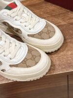 Home SHOES GUCCI #Couple Size [White Old Fashioned] 𝐆𝐮𝐜𝐜𝐢 𝐑𝐞-𝐖𝐞 𝐛 As Sabato De Sarno’s first sneaker for Gucci, the Re-Web collection reinterprets the brand’s classic stripes with bold, irreverent detailing against a modern silhouette crafted in white leather, the new sneakers are embellished with a number of the brand’s iconic details and a bright red and green lace-up tongue, making them an instant favorite. The white leather is specially treated to be soft and supple with an embossed grained texturenn handwritten Gucci logo and interlocking double G webbing labeln with interlocking double G and handwritten Gucci logoRubber outsolen with interlocking double G detailingEyeletsn with webbing tongueSize: Women 35-40M Men 39-44M