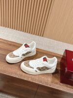 #Couple Size [White Old Fashioned] 𝐆𝐮𝐜𝐜𝐢 𝐑𝐞-𝐖𝐞 𝐛 As Sabato De Sarno’s first sneaker for Gucci, the Re-Web collection reinterprets the brand’s classic stripes with bold, irreverent detailing against a modern silhouette crafted in white leather, the new sneakers are embellished with a number of the brand’s iconic details and a bright red and green lace-up tongue, making them an instant favorite. The white leather is specially treated to be soft and supple with an embossed grained texturenn handwritten Gucci logo and interlocking double G webbing labeln with interlocking double G and handwritten Gucci logoRubber outsolen with interlocking double G detailingEyeletsn with webbing tongueSize: Women 35-40M Men 39-44M