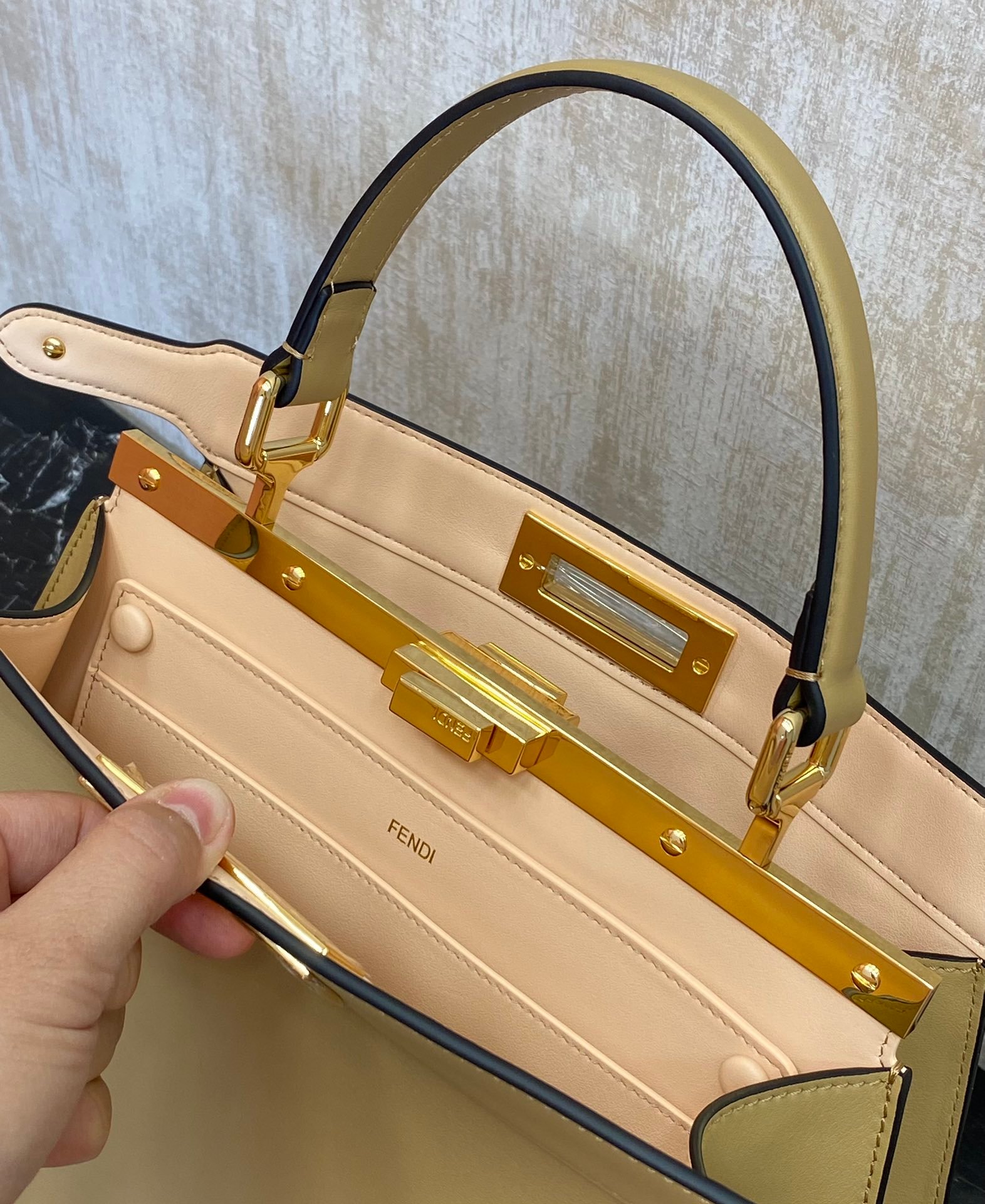 Peek-a-boo (hide and seek) as her name playful and cute when you open her, will always bring you a different surprise to show the combination of different lining materials, unique design just for you! Soft but stylish imported calf leather, burlap unique design ♦️ customized hardware, ALCANTARA lining.