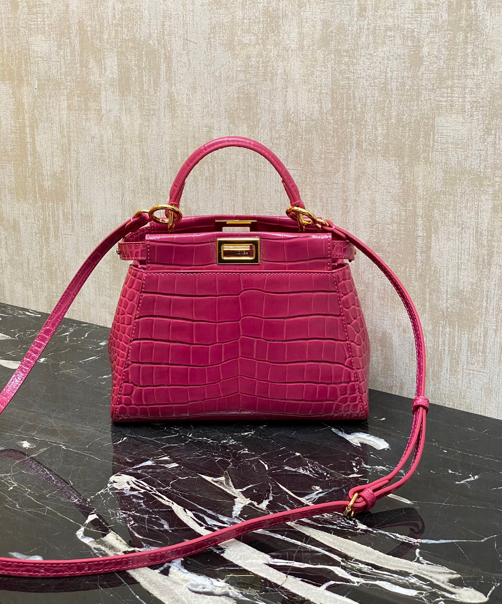 F home with the top calfskin embossed 🐊 crocodile pattern, lined with lambskin, is the only can represent the brand peekaboo classic series ~