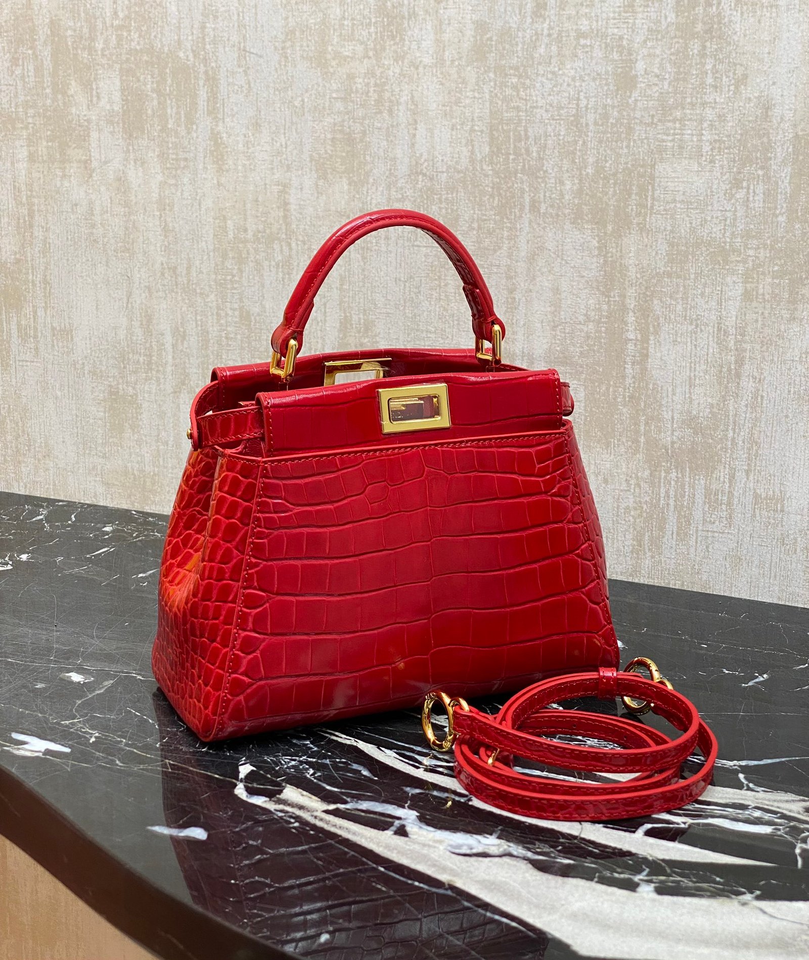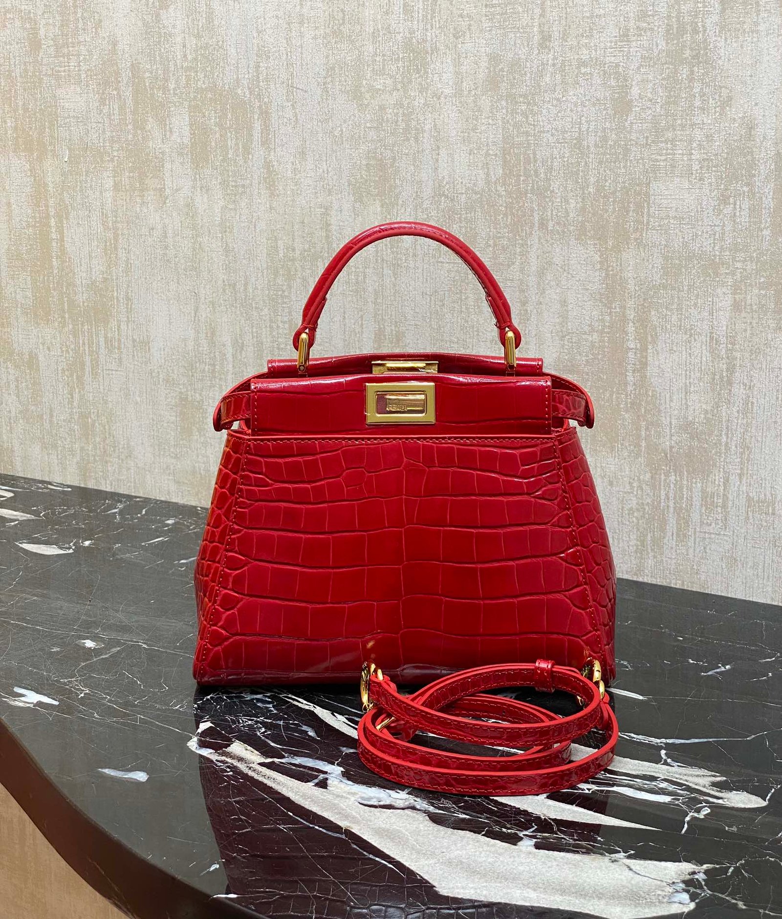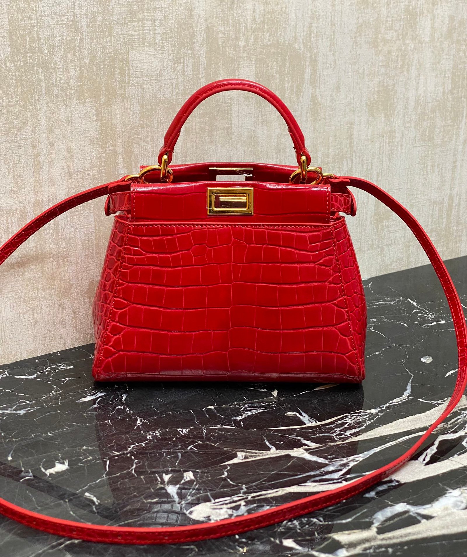 F home with the top calfskin embossed 🐊 crocodile pattern, lined with lambskin, is the only can represent the brand peekaboo classic series ~