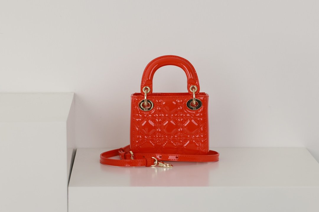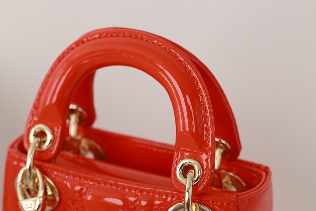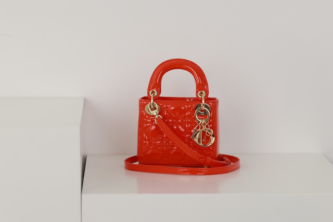 Home BAGS Dior Dio.r Patent Leather Bag n Color: Orange Red [In Stock] nn12 X 10 X 5 cm nn Deer Leather Lining n Shoulder Carrying, Hand Carrying nn🔎 Model No.: M49P