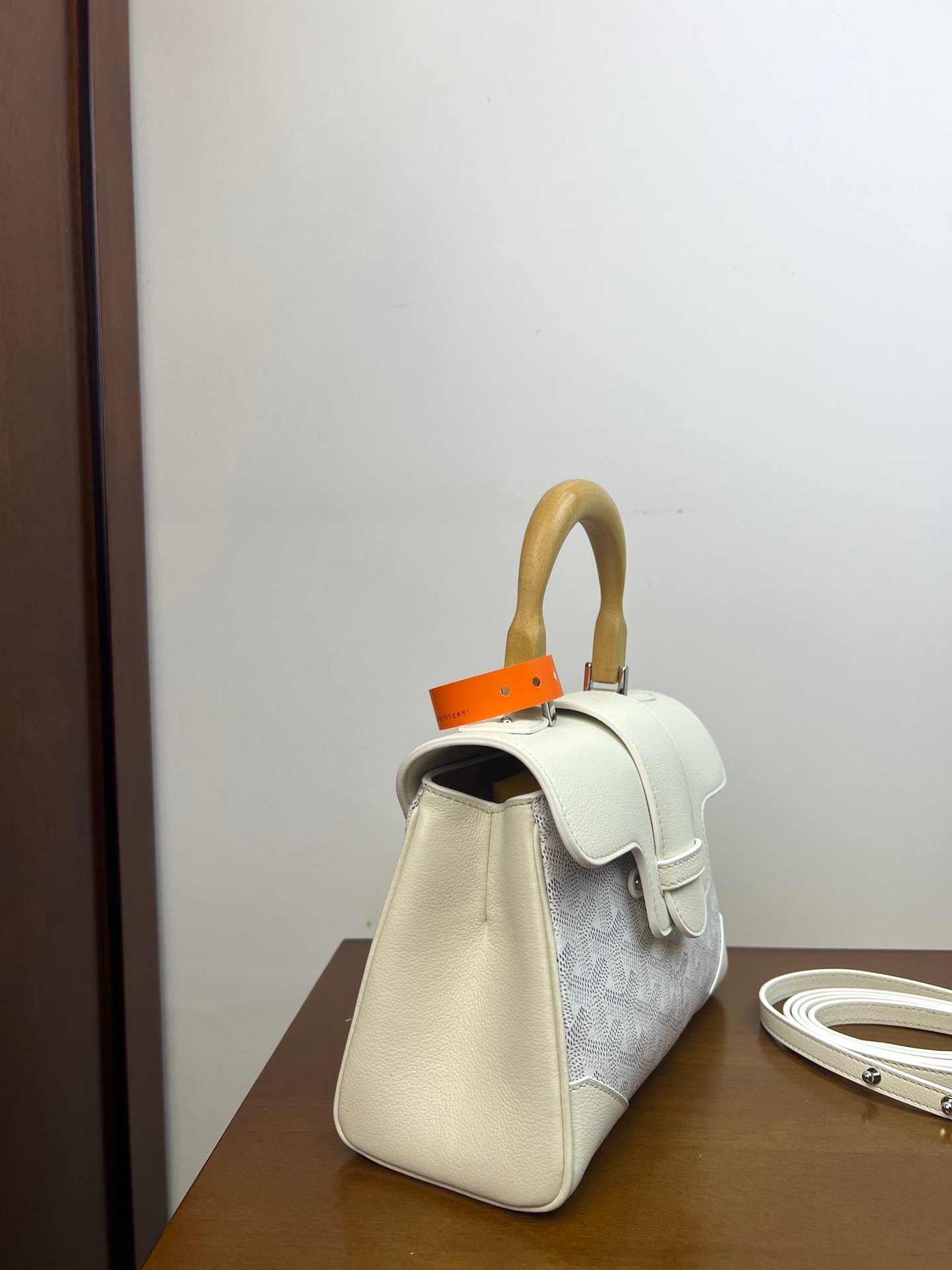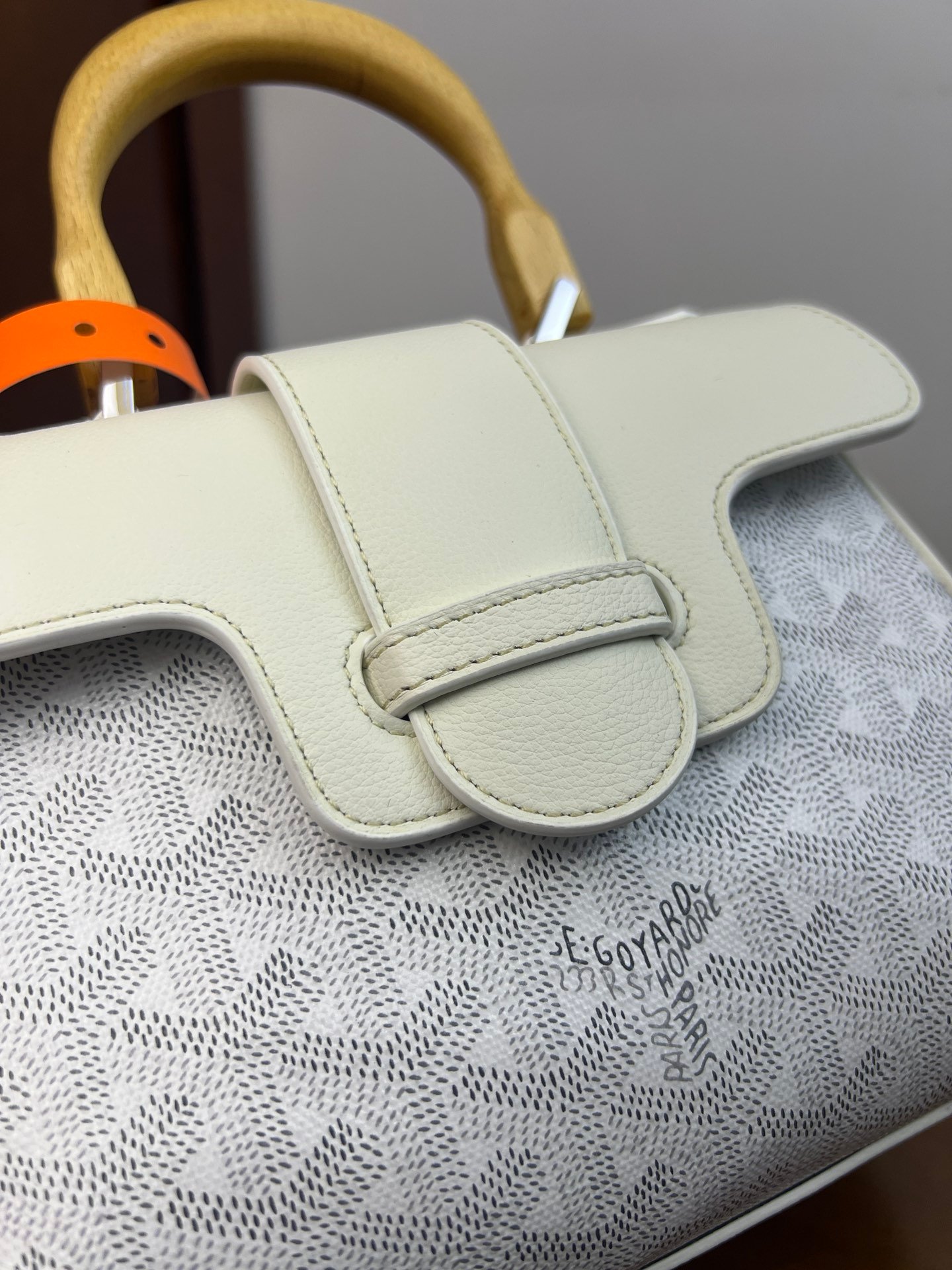 Goyard mini Saigon soft leather Saigon bag Symbolizing love, elegance, and sophistication of the Saigon bag! Low-profile workmanship and perfect, this bag is elegant retro and no loss of flavor makes it hard to refuse the style, carry is beyond imagination light ~ Material: wood glazed handle with imported first layer cowhide, Size: 20×14.5 x 9cm, plus the wooden handle a total height of 25cm