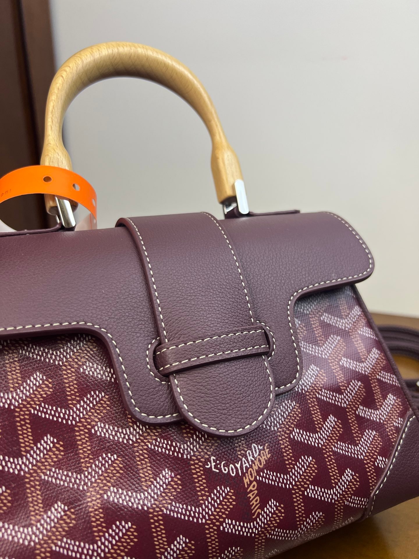 Exclusive original leather ~ OEM grade high version ~ nGoyard mini Saigon soft leather Saigon bag Symbolizing love, elegance, and sophistication of the Saigon bag! Low-profile workmanship and perfect, this bag is elegant retro and no loss of flavor makes it hard to refuse the style, carry is beyond imagination light ~ Material: wood glazed handle with imported first layer cowhide, Size: 20×14.5 x 9cm, plus the wooden handle a total height of 25cm n