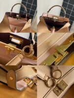 Be the first to review “FEND1PeekabooISeeU medium handbag in calf leather, embellished with a classic twist lock on both sides, lined in soft nappa leather, with two compartments separated by a rigid divider, featuring a tie closure internal pocket and gold-tone metal pieces. The handbag comes with handles and an adjustable, detachable shoulder strap that can be added with a tortoiseshell buckle, a sophisticated and durable bagnSize: 27*9.5*21cmnNo. 327n” Cancel reply