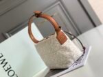 L⊚℮w℮🌟Small Cowhide Surplus Leather Woven Basket Handbag👜 (New Approach🆕New Size)nTraditional carryall handbags in precision-woven classic cowhide leather and soft grained cowhide strips! reinterpreted to create a checkerboard effect, with rolled cowhide top handles.*Carry over the shoulder or by the top handle* Detachable shoulder strap* Cowhide leather lace-up closure* Unlined* Anagram embossing 🌟nsize:24*16*23cmnModel No.:062840n