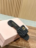 [Flat Heel] 𝐌𝐢𝐮 𝐌𝐢𝐮# Miu Miu New Pleated Cat Heel Drags n Let you walk can also be beautiful to the heart!!!! The design is very simple and atmospheric, without too much decoration and fancy design, but it comes with an elegant temperament, with a very strong ability to match, whether it is a skirt, pants or jeans, can easily match with different styles, so that you become a fashion icon!!!nnFull sheepskin made of soft and breathable leather sole nSize: 35-39 (40 customized non-returnable) $230.00
