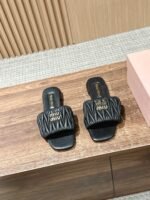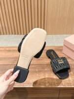 [Flat Heel] 𝐌𝐢𝐮 𝐌𝐢𝐮# Miu Miu New Pleated Cat Heel Drags n Let you walk can also be beautiful to the heart!!!! The design is very simple and atmospheric, without too much decoration and fancy design, but it comes with an elegant temperament, with a very strong ability to match, whether it is a skirt, pants or jeans, can easily match with different styles, so that you become a fashion icon!!!nnFull sheepskin made of soft and breathable leather sole nSize: 35-39 (40 customized non-returnable)