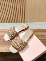 [Flat Heel] 𝐌𝐢𝐮 𝐌𝐢𝐮# Miu Miu New Pleated Cat Heel Drags n Let you walk can also be beautiful to the heart!!!! The design is very simple and atmospheric, without too much decoration and fancy design, but it comes with an elegant temperament, with a very strong ability to match, whether it is a skirt, pants or jeans, can easily match with different styles, so that you become a fashion icon!!!nnFull sheepskin made of soft and breathable leather sole nSize: 35-39 (40 customized non-returnable) $230.00
