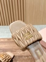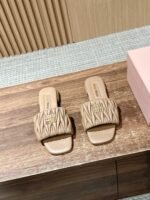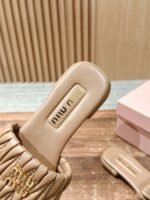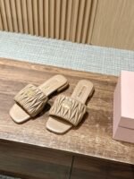 [Flat Heel] 𝐌𝐢𝐮 𝐌𝐢𝐮# Miu Miu New Pleated Cat Heel Drags n Let you walk can also be beautiful to the heart!!!! The design is very simple and atmospheric, without too much decoration and fancy design, but it comes with an elegant temperament, with a very strong ability to match, whether it is a skirt, pants or jeans, can easily match with different styles, so that you become a fashion icon!!!nnFull sheepskin made of soft and breathable leather sole nSize: 35-39 (40 customized non-returnable)