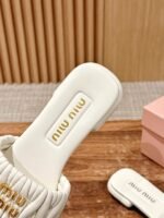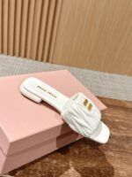 [Flat Heel] 𝐌𝐢𝐮 𝐌𝐢𝐮# Miu Miu New Pleated Cat Heel Drags n Let you walk can also be beautiful to the heart!!!! The design is very simple and atmospheric, without too much decoration and fancy design, but it comes with an elegant temperament, with a very strong ability to match, whether it is a skirt, pants or jeans, can easily match with different styles, so that you become a fashion icon!!!nnFull sheepskin made of soft and breathable leather sole nSize: 35-39 (40 customized non-returnable)
