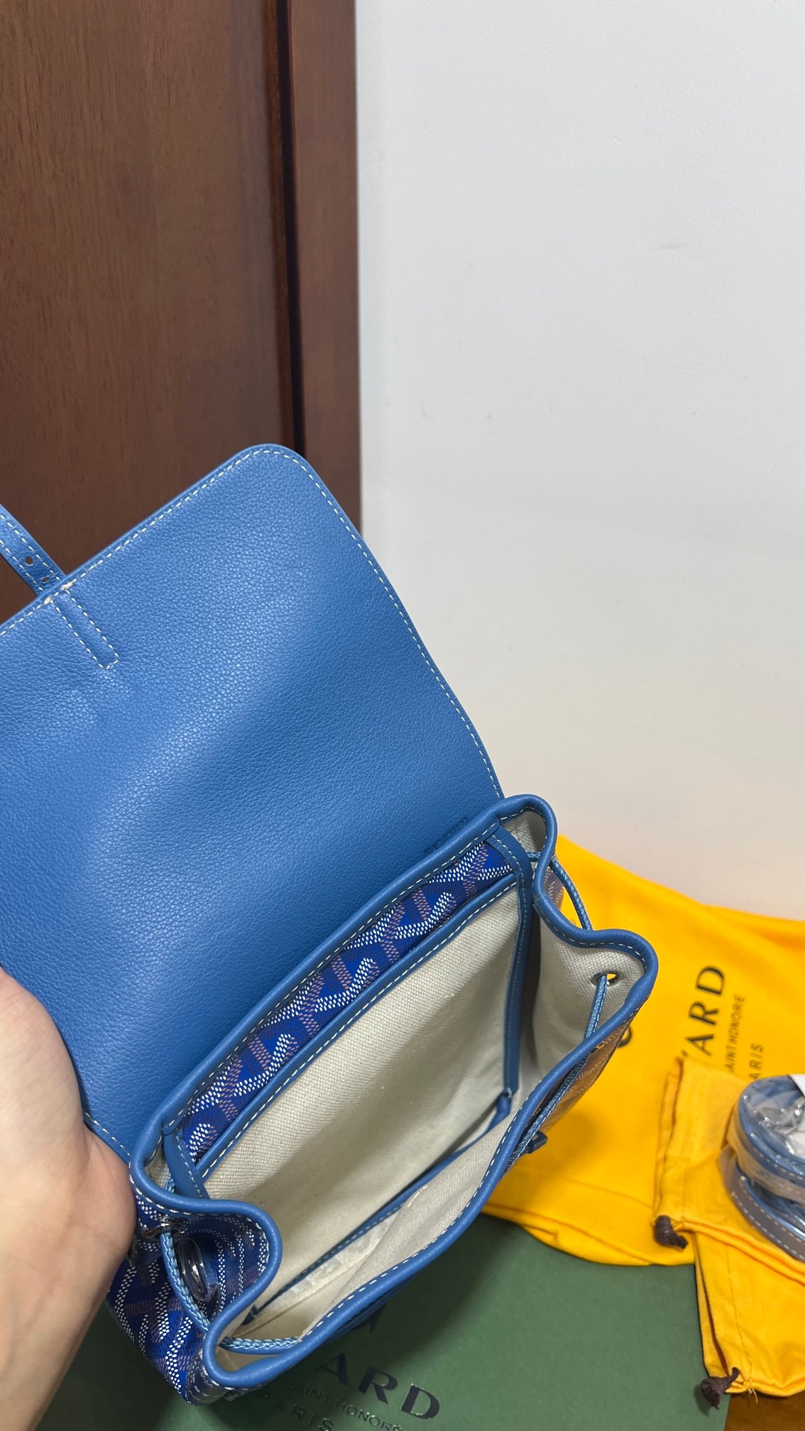 Goyard’s new Alpin Generation Mini Shoulder Bag 🎒Launched 👻Goyard’s workshop is committed to the tradition of craftsmanship, and has created a multifunctional bag of great practical value. Leather handles and two detachable shoulder straps make the Alpin mini bag hand-carry, shoulder or cross-body, and can also be your mini “school bag” The fabric is made of customized double-thickened rain linen ✅ customized leather pattern ✅ customized hardware ✅ braided leather drawstring ✅ with linen, hemp fibers, and cotton as the main ingredients. Other details see picture 👀 Size:18*21*9cmn