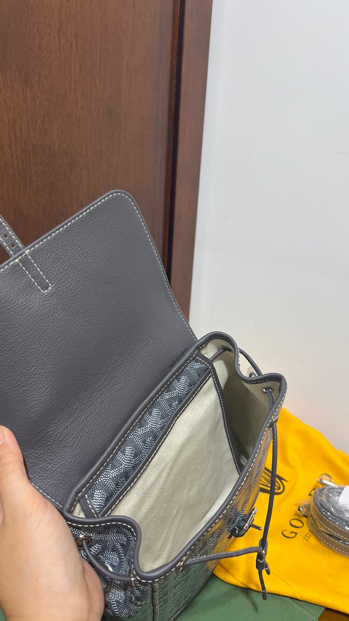 Goyard’s new Alpin Generation Mini Shoulder Bag 🎒Launched 👻Goyard’s workshop is committed to the tradition of craftsmanship, and has created a multifunctional bag of great practical value. Leather handles and two detachable shoulder straps make the Alpin mini bag hand-carry, shoulder or cross-body, and can also be your mini “school bag” The fabric is made of customized double-thickened rain linen ✅ customized leather pattern ✅ customized hardware ✅ braided leather drawstring ✅ with linen, hemp fibers, and cotton as the main ingredients. Other details see picture 👀 Size:18*21*9cm