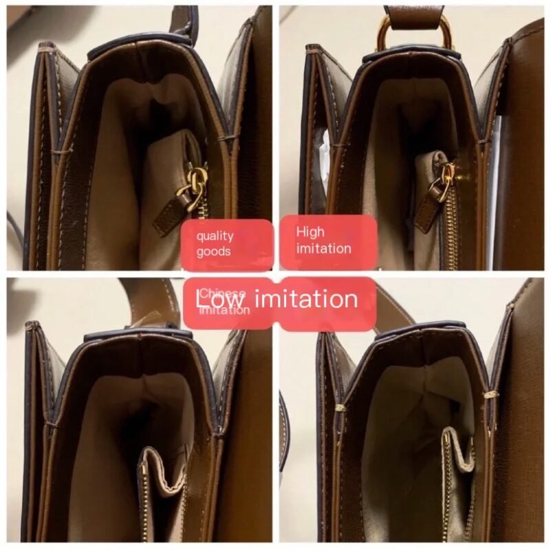 Figure 6: Details of the bag body, the high-end version is close to the genuine product, the color of the medium version synthetic leather is lighter, the color of the low version leather is lighter, and the two heavy lines at the interface are not aligned.
