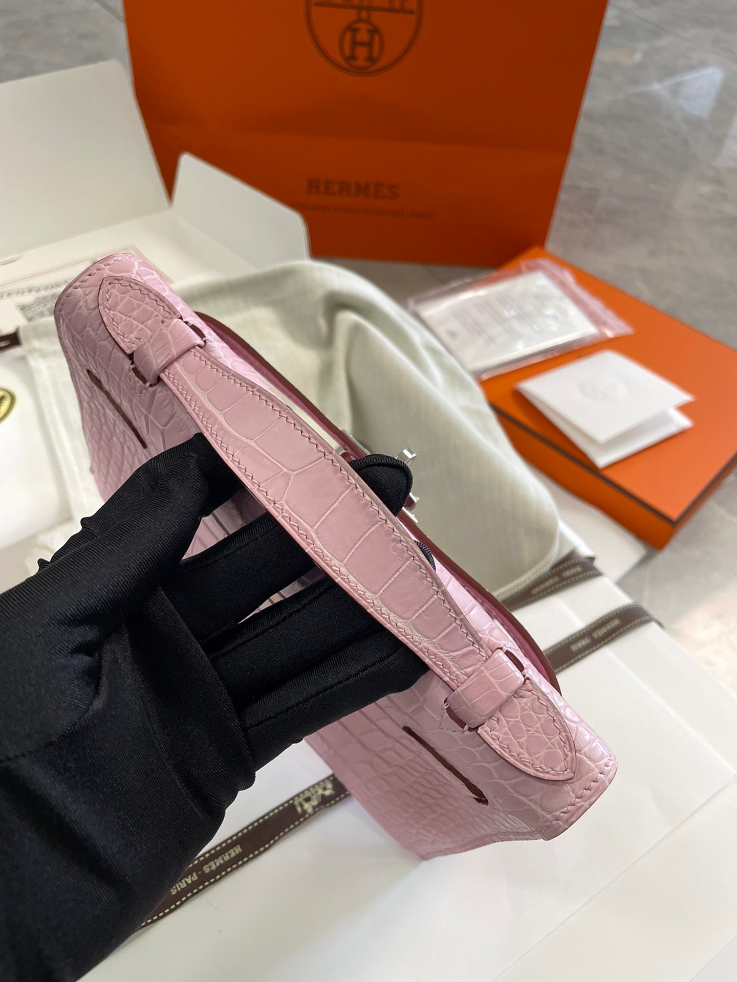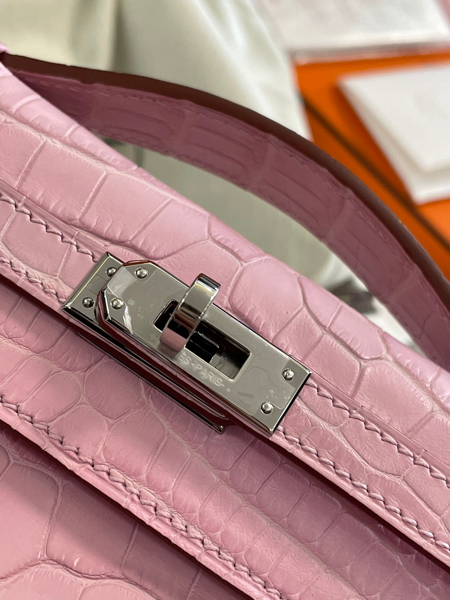 Hermes Actual n hand-stitched nKelly pochette 1st generation nn Matte Matte Matte Alligator Square nn3Q Pink Silver Buckle
