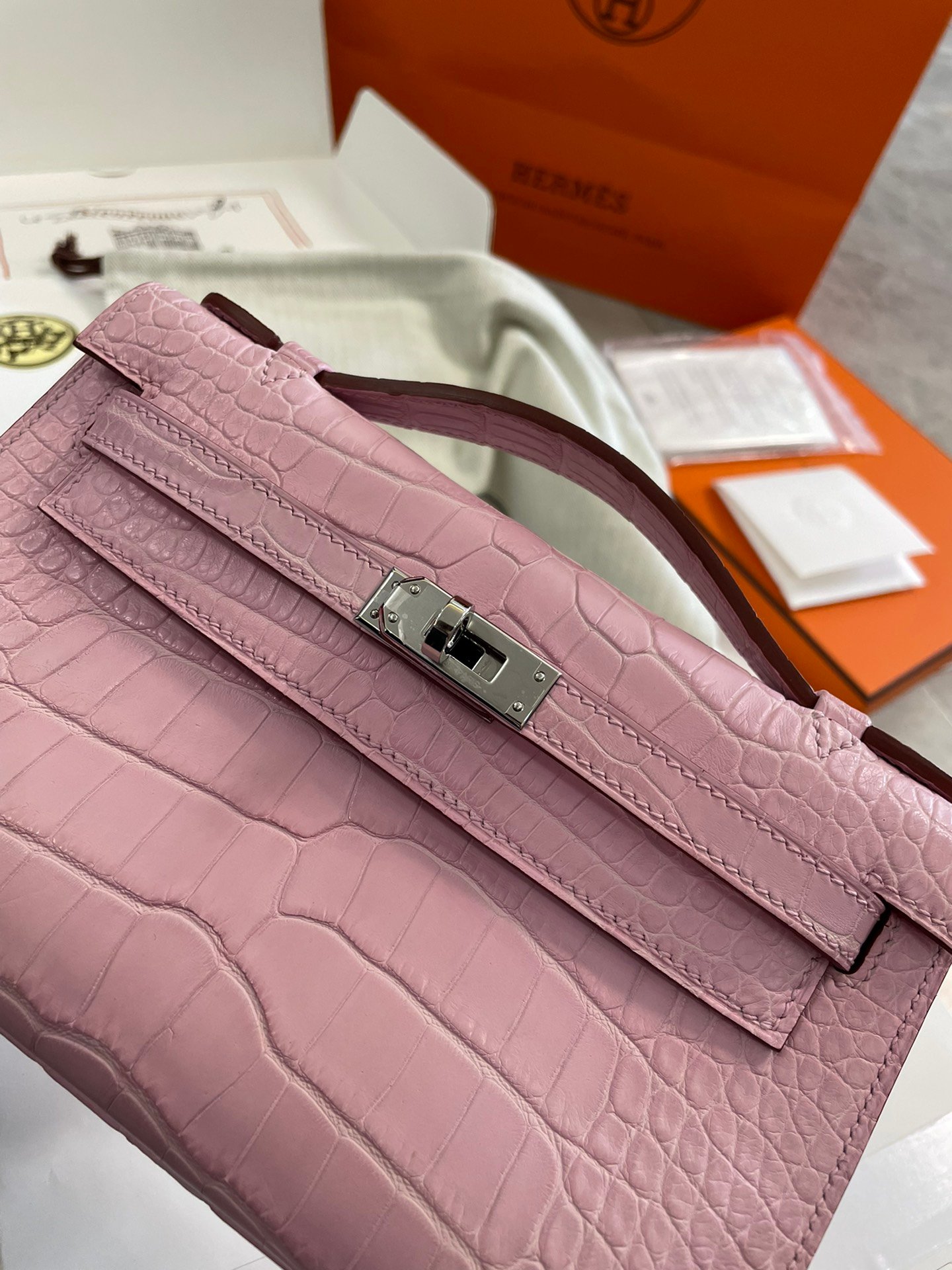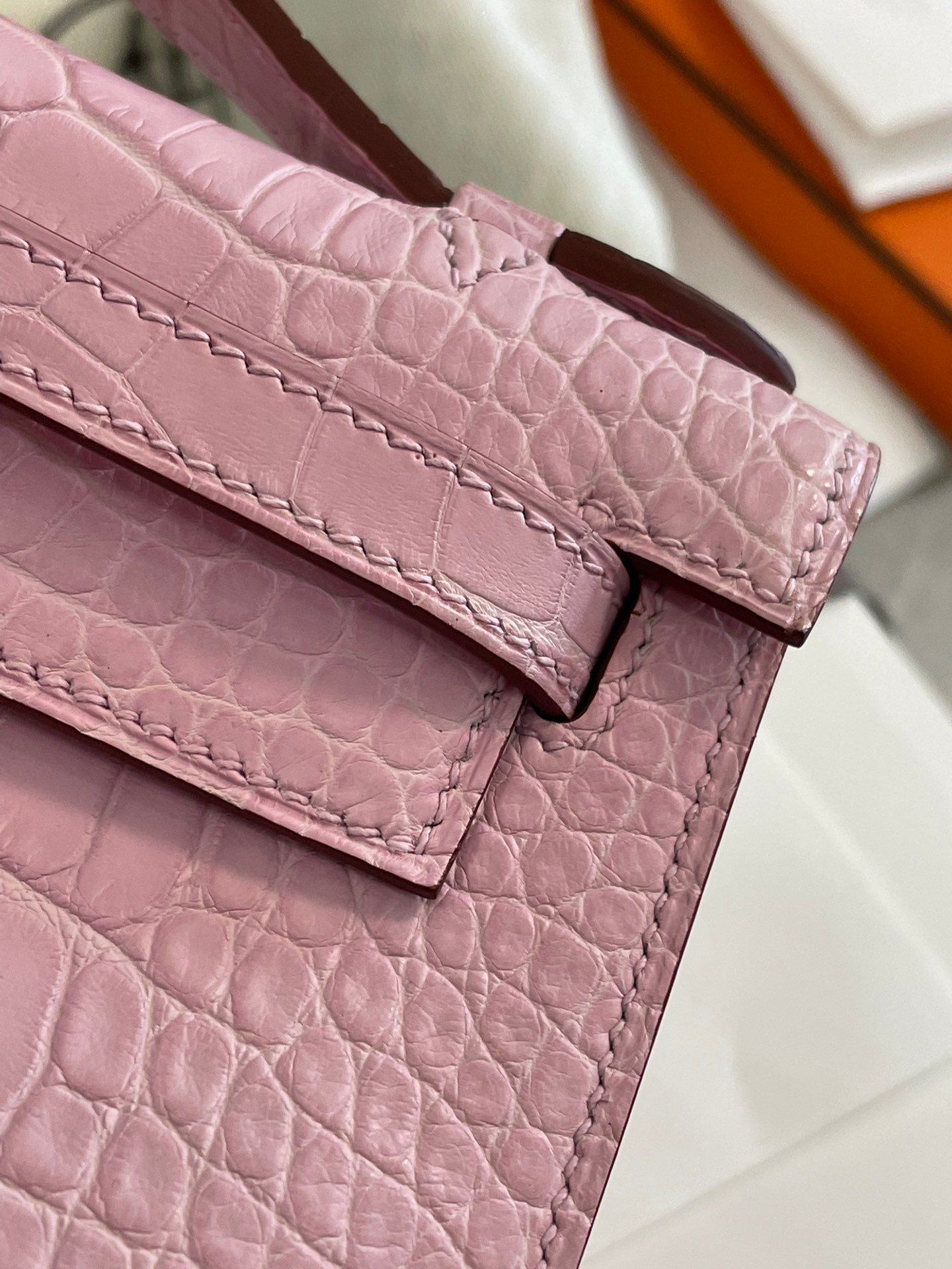 Hermes Actual n Hand-stitched nnKelly Pochette 1st Generation 22cm nnAmerican Crocodile Alligator Matte Matte Square nnDried Rose