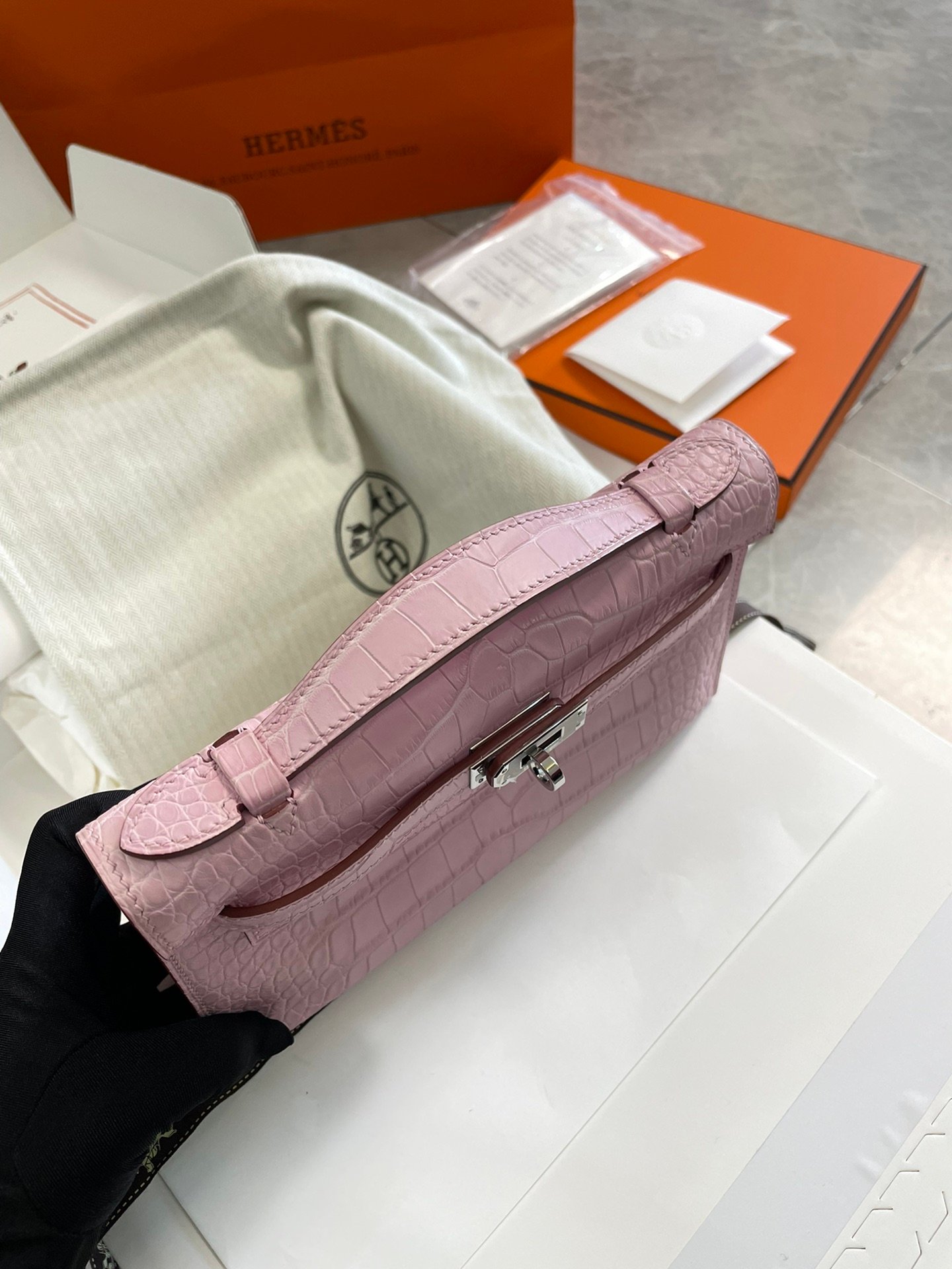 Home BAGS HERMES Hermes Actual n hand-stitched nKelly pochette 1st generation nn Matte Matte Matte Alligator Square nn3Q Pink Silver Buckle