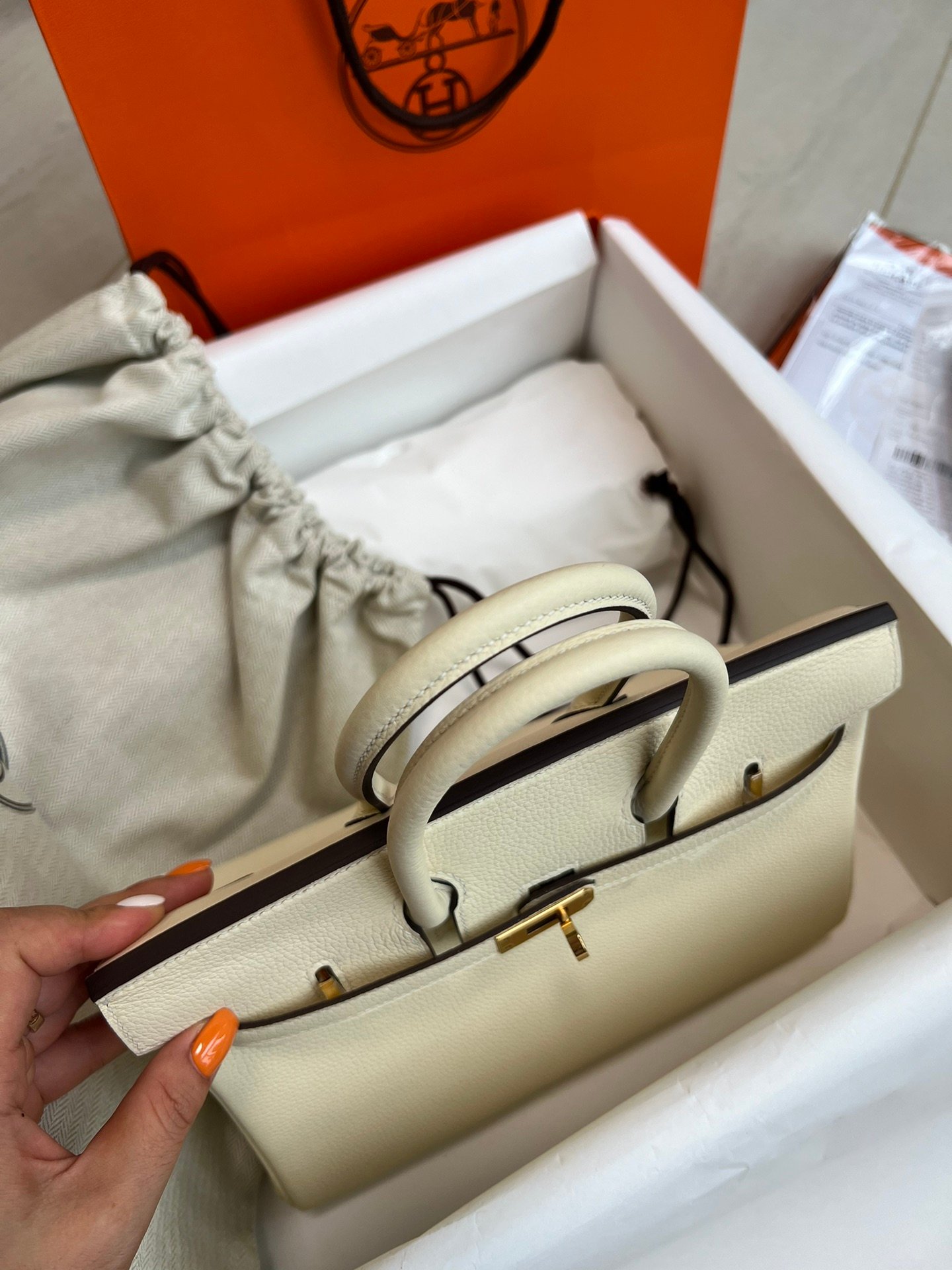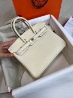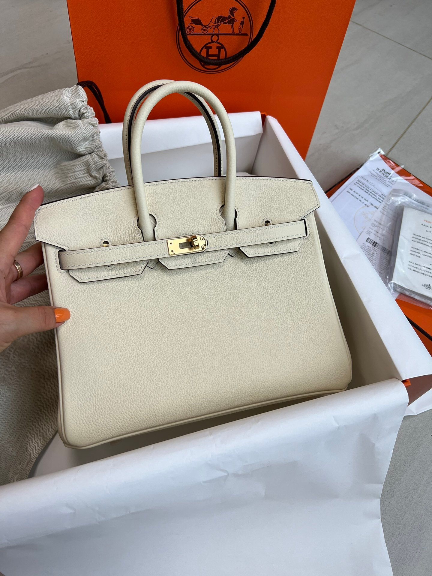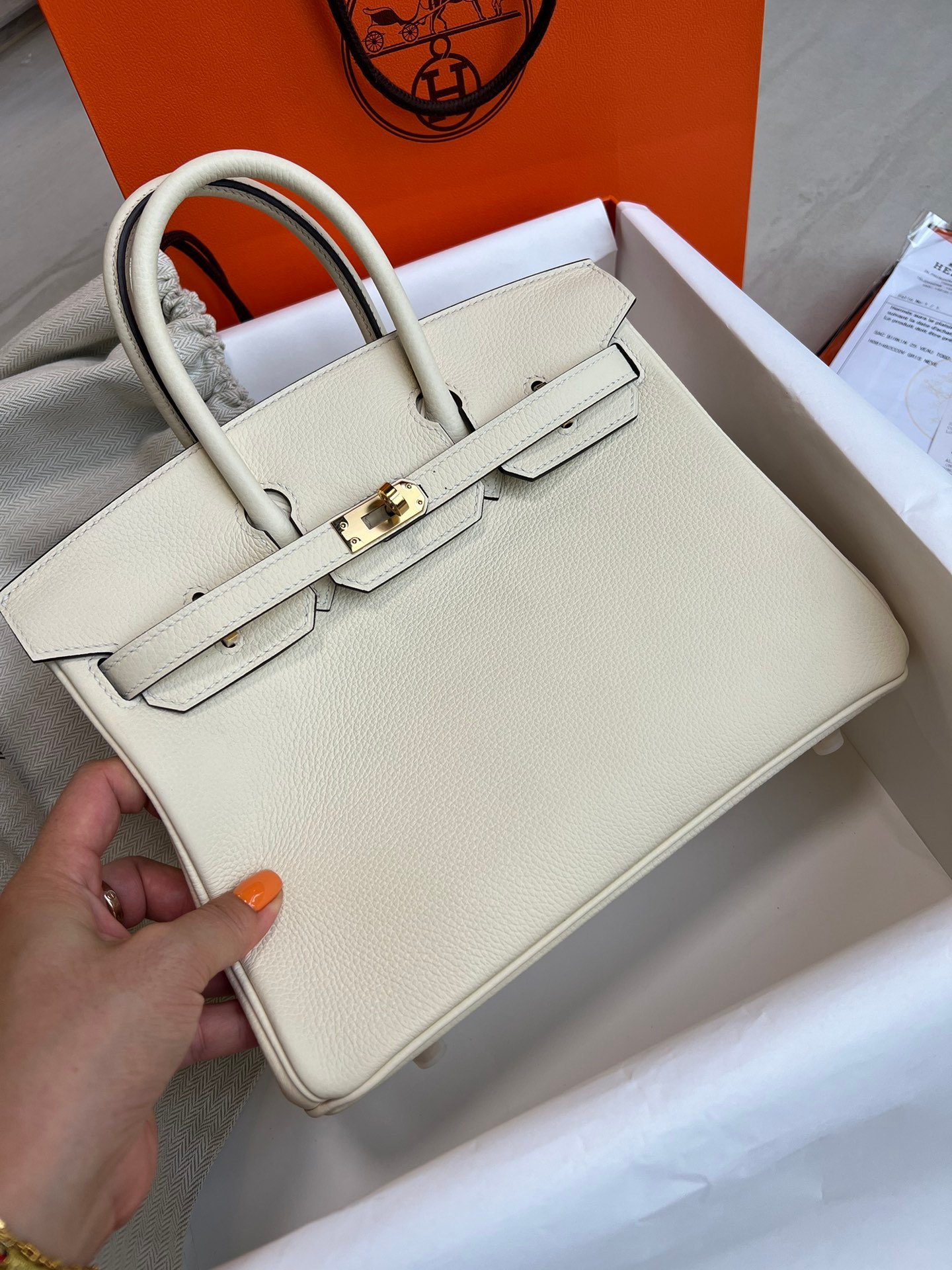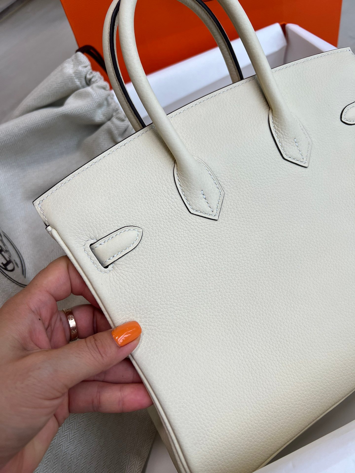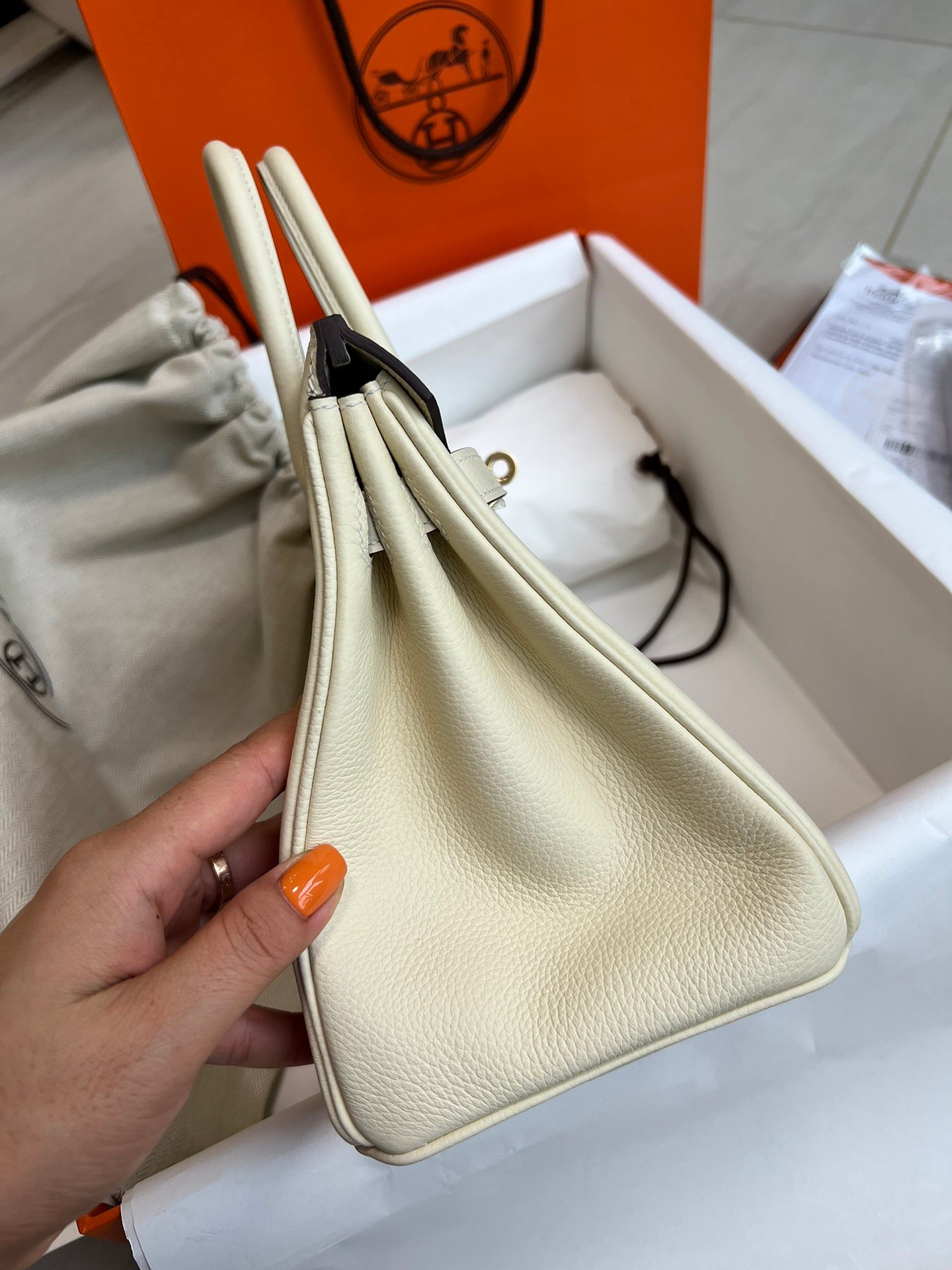 Hermes Actual nbirkin25 cream white togo silver buckle, hand-stitched, zp hand-engraved hardware.