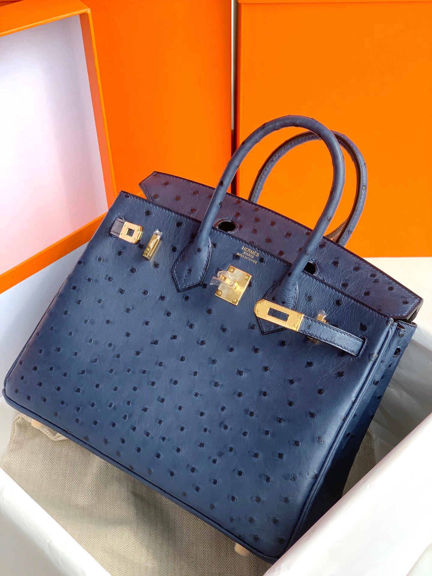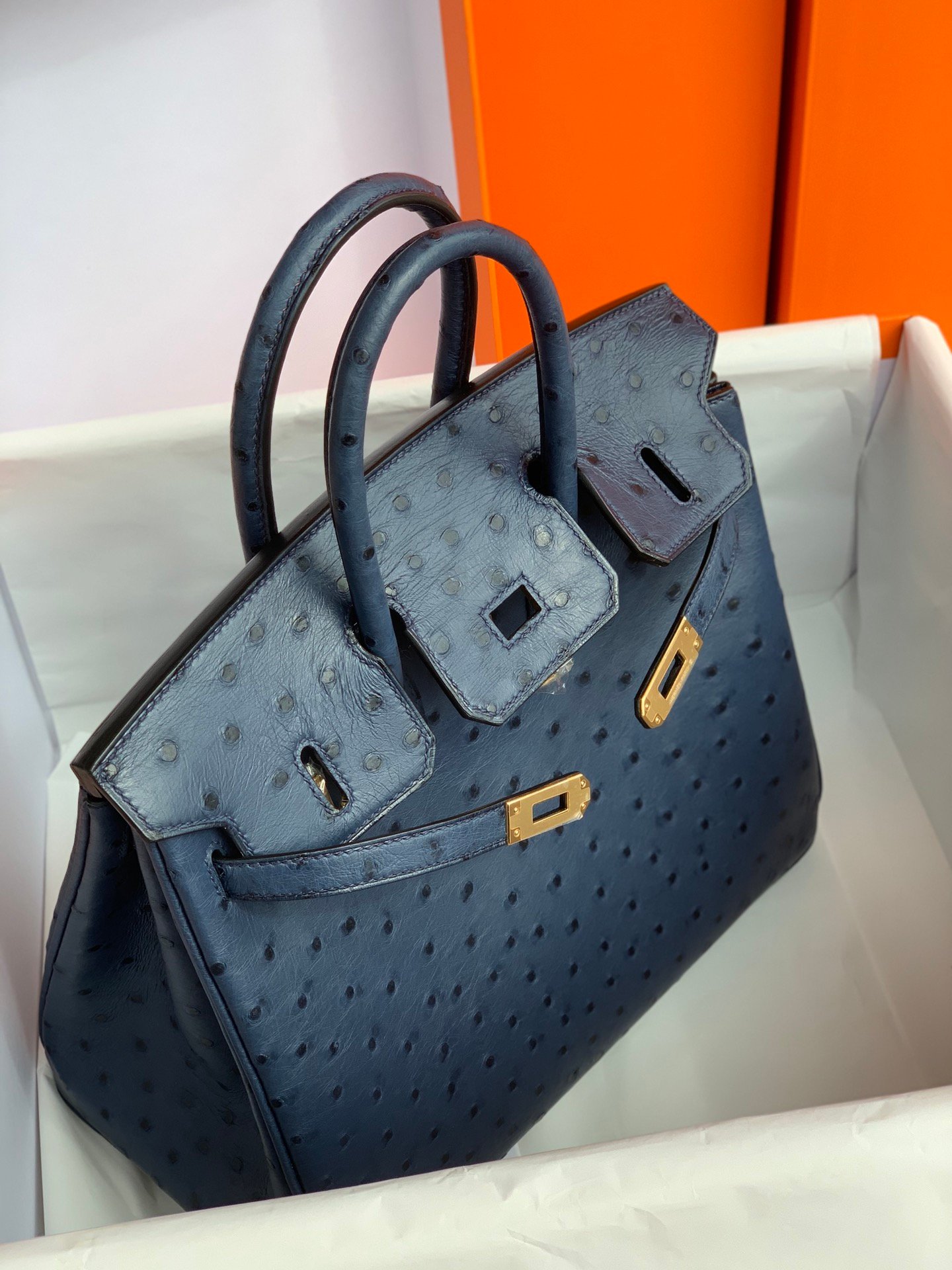 Hermes Birkin 25cm, 71 royal blue, ostrich leather, gold buckle, noble but not lose the delicate ostrich leather, too beautiful, royal blue color scheme noble and elegant temperament ~