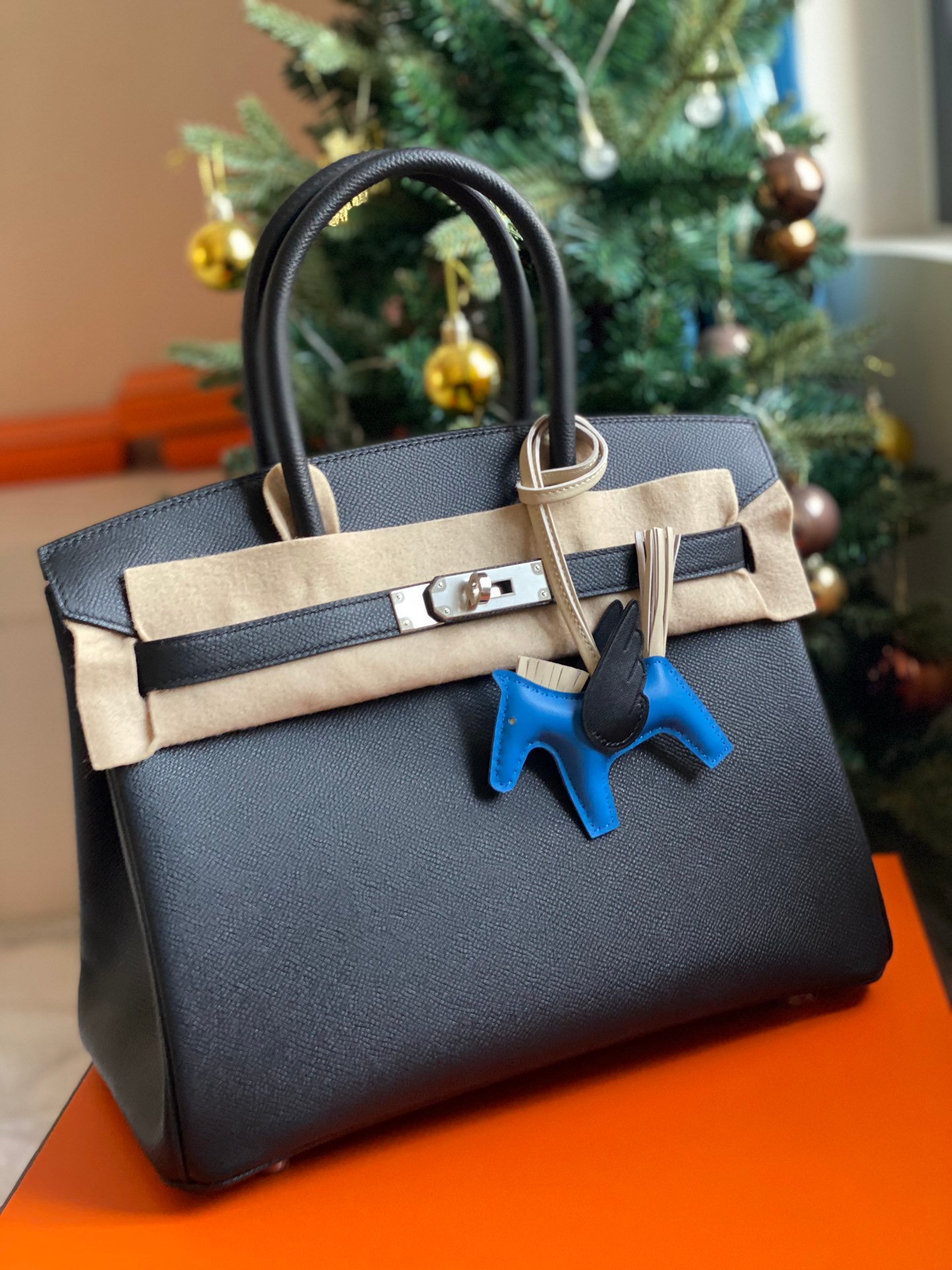 Hermes Birkin 30 Full Hand Stitched:nepsom Leather Black Silver Bucklen Super popular in recent years, black and silver, e leather three-dimensional and stylish. Practical and casual combined into one, casual formal can be managed!