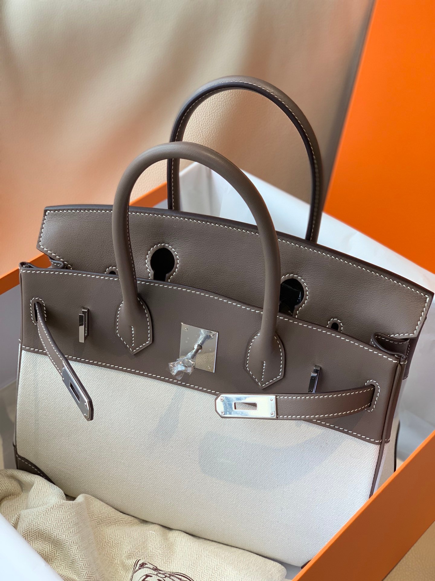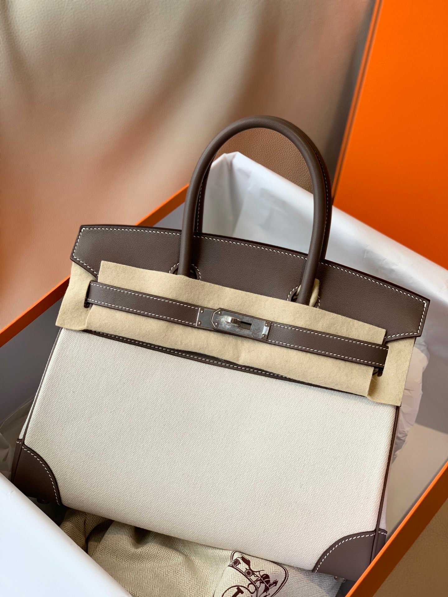 Hermes Birkin 30cm, elephant gray spelling canvas, plain swift leather, silver buckle the collision of two different leather, cleverly the extraordinary temperament of birkin show, not pick the occasion to use a bag, especially suitable for attending high-level occasions~