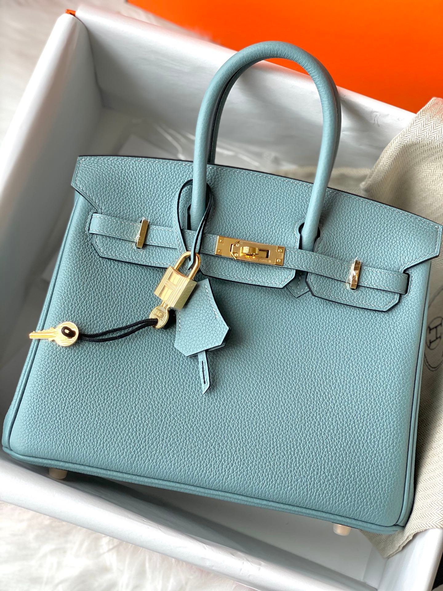 Hermes Birkin25cm azure togo leather and gold buckle, platinum in the form of casual, spontaneous, can be used as a briefcase and travel boarding bag, to attend a variety of occasions when it, the gas field!