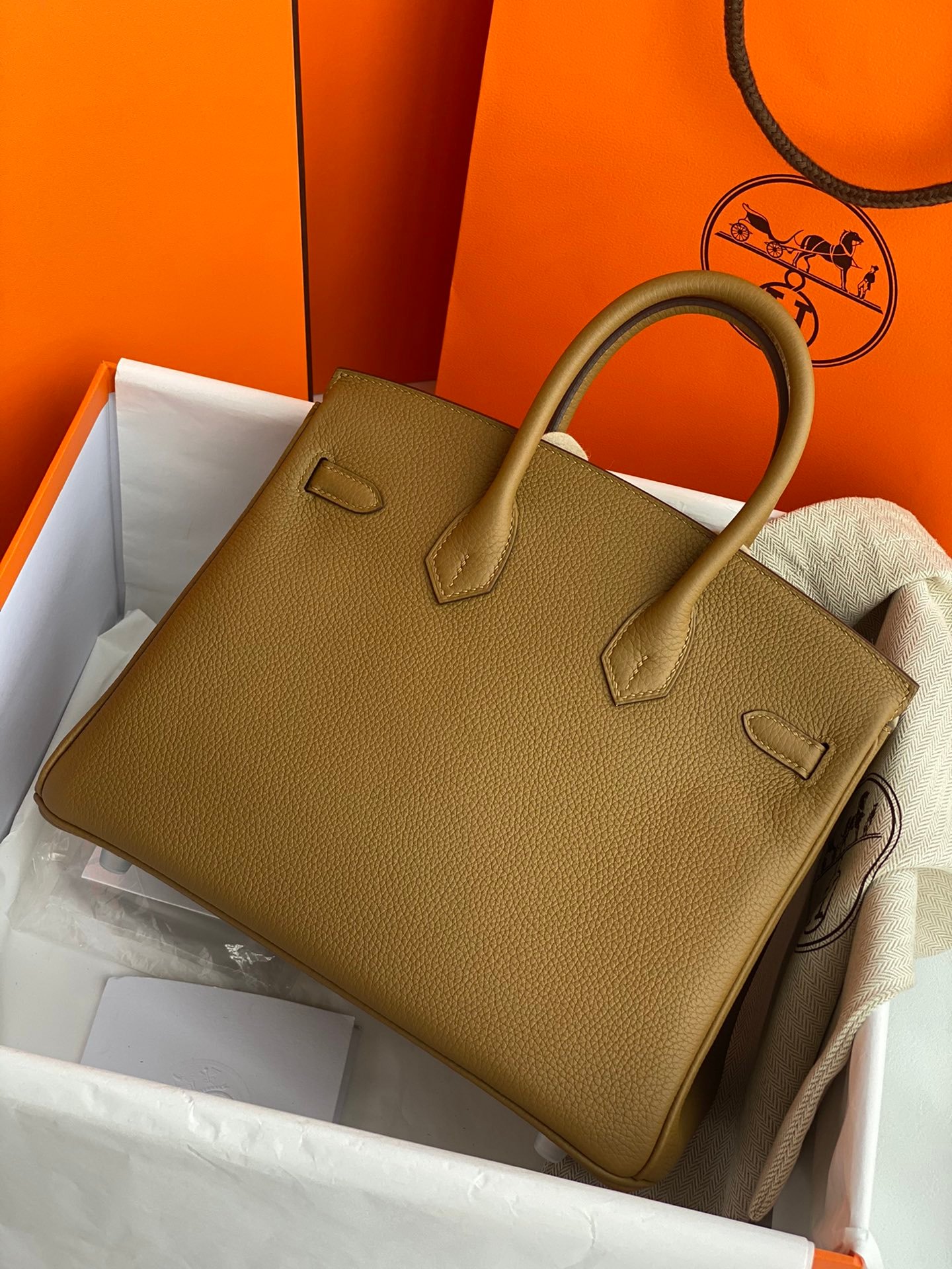 Hermes Birkin25cm Copper gold togo leather, silver buckle, Hermes the king of handbags platinum bag, love the beauty of the lady’s favorite, exquisite craftsmanship to create artistry and vitality of the platinum bag!