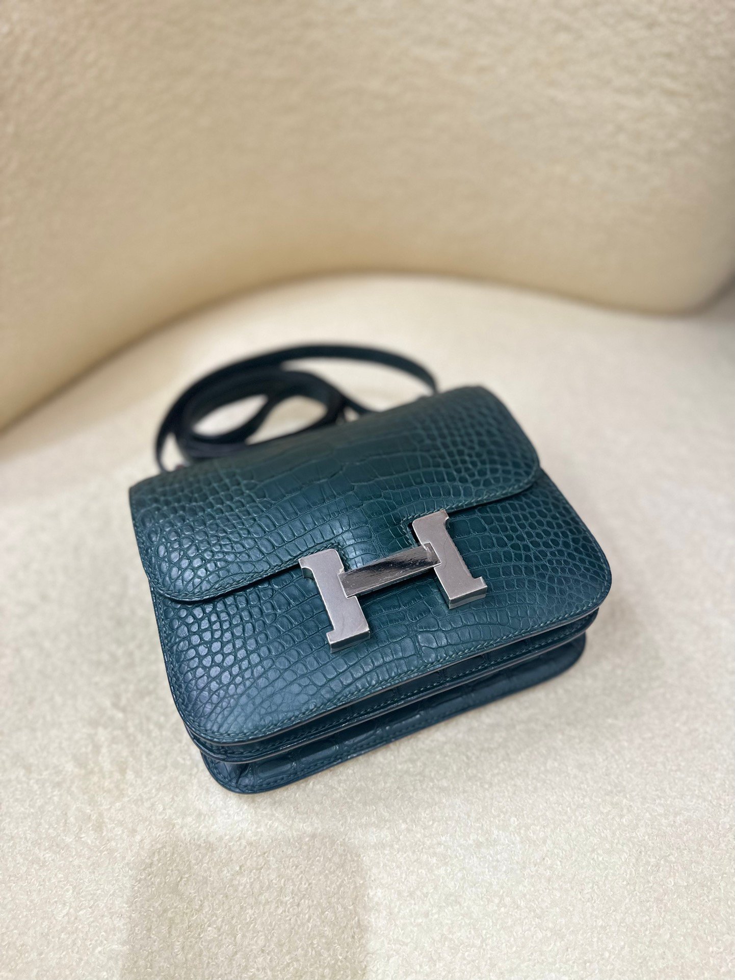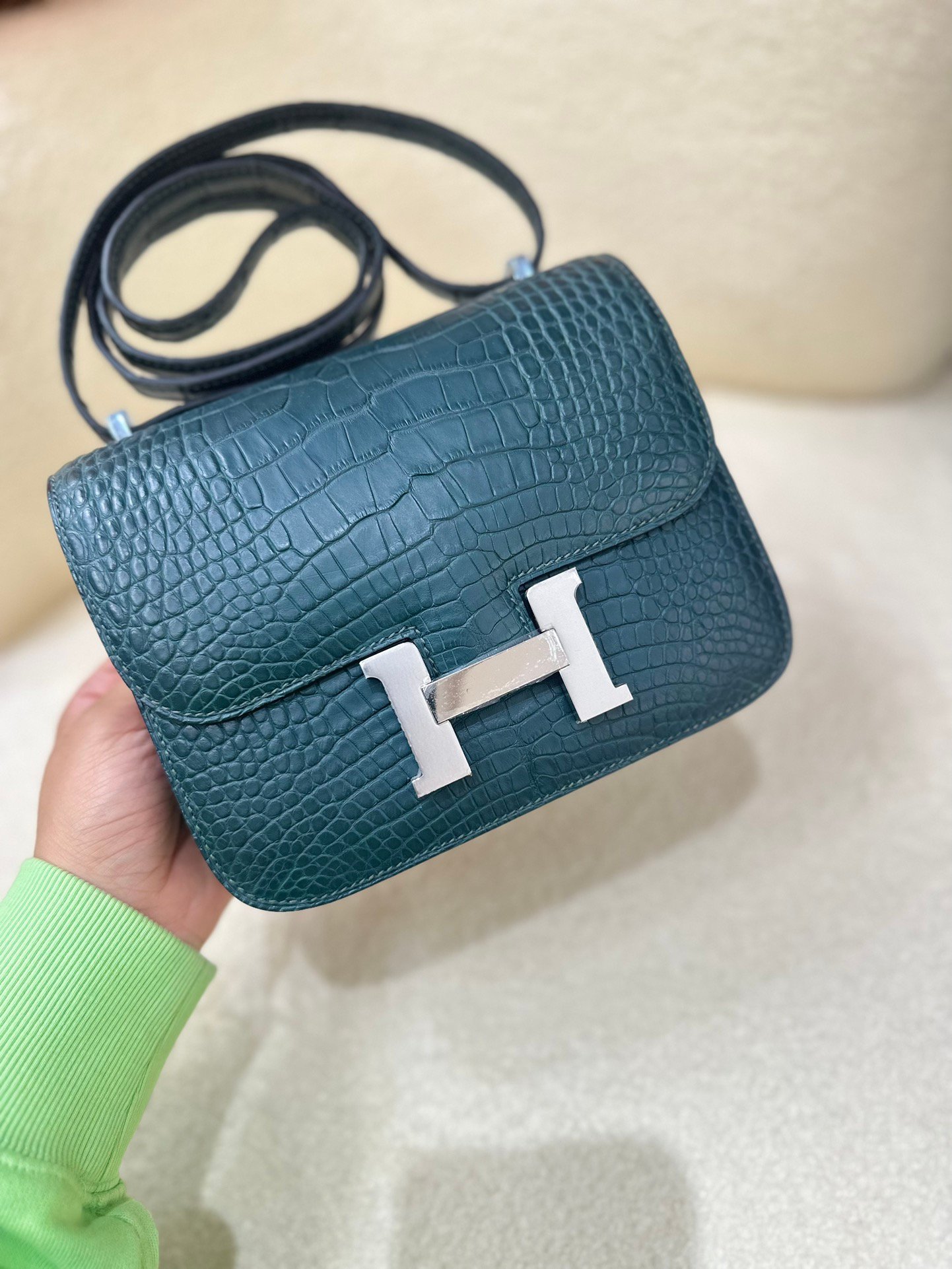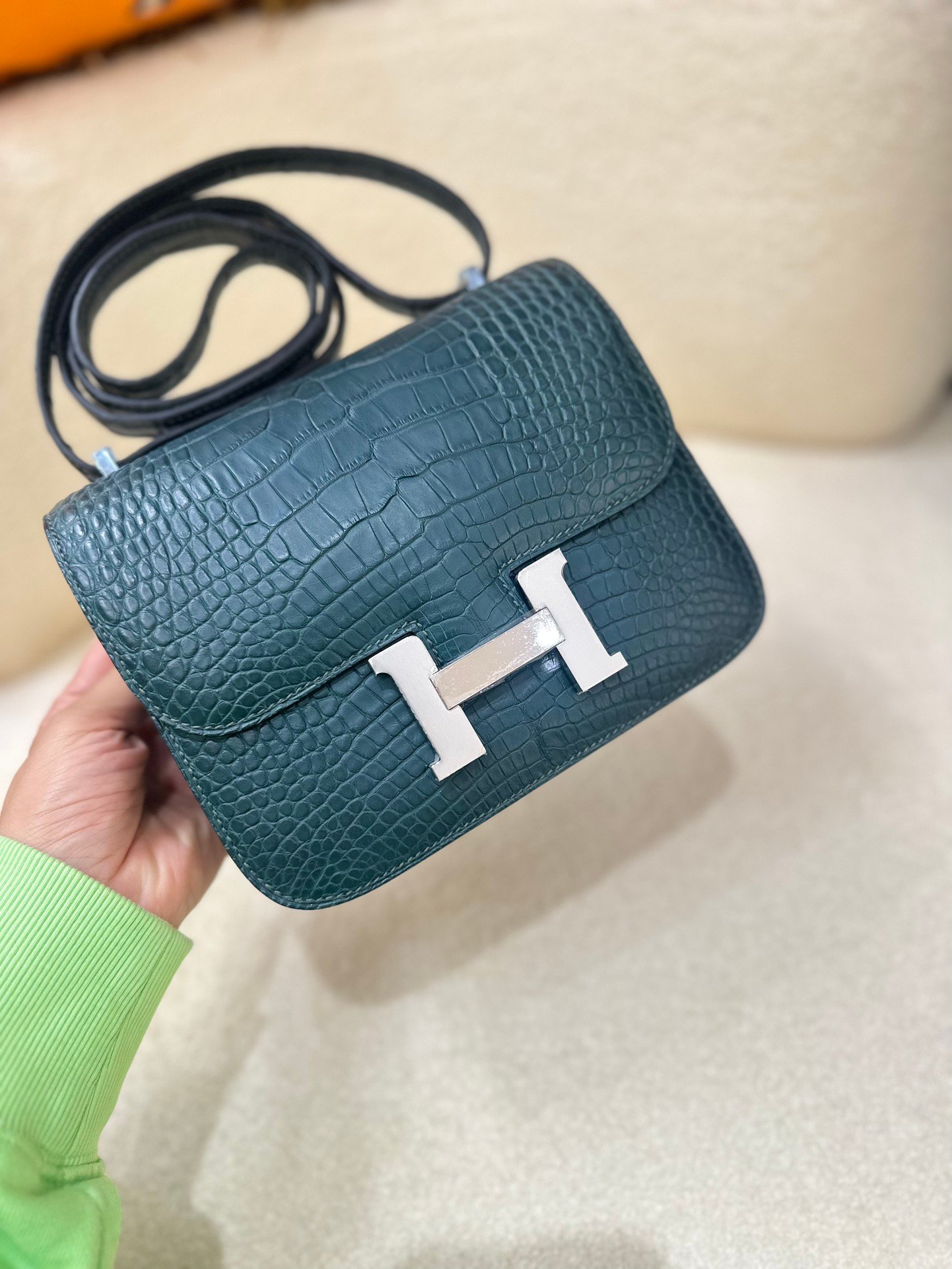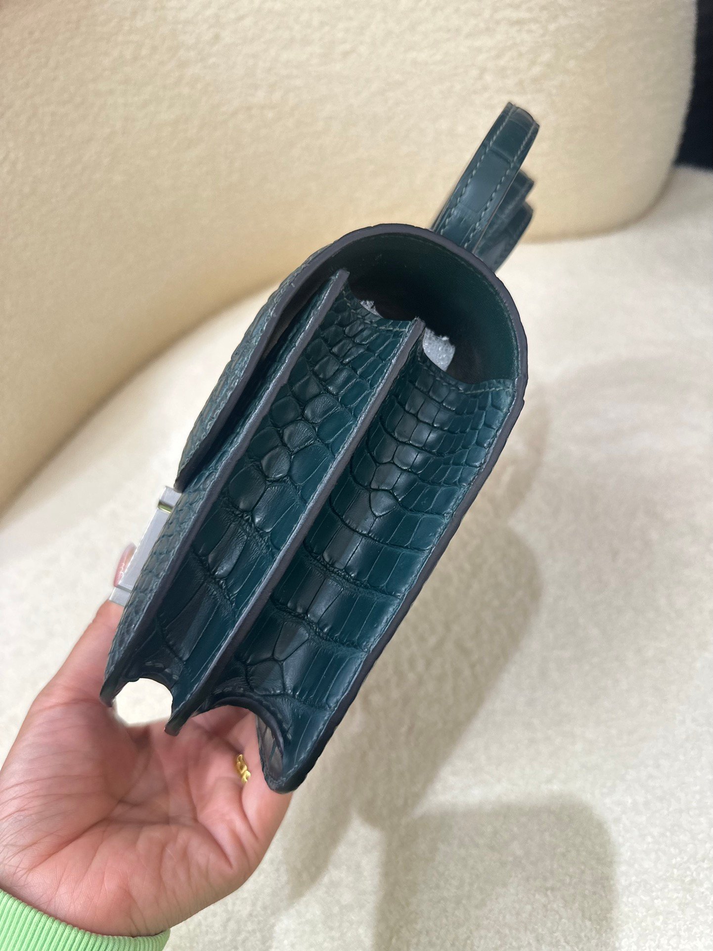 Hermes Constance 18cm American Crocodile Alligator #Square Matte Mattenn Original Development Details Casual Comparison Old Craftsman Full Hand Stitchingnn6O Cedar Green Vert Cypress