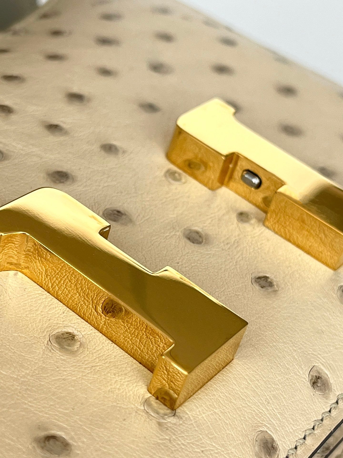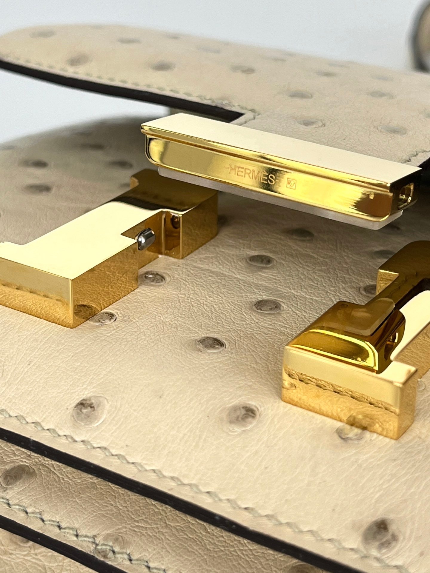 Hermes constance concon 19 wool white south african kk ostrich gold buckle, first class hand stitching