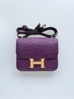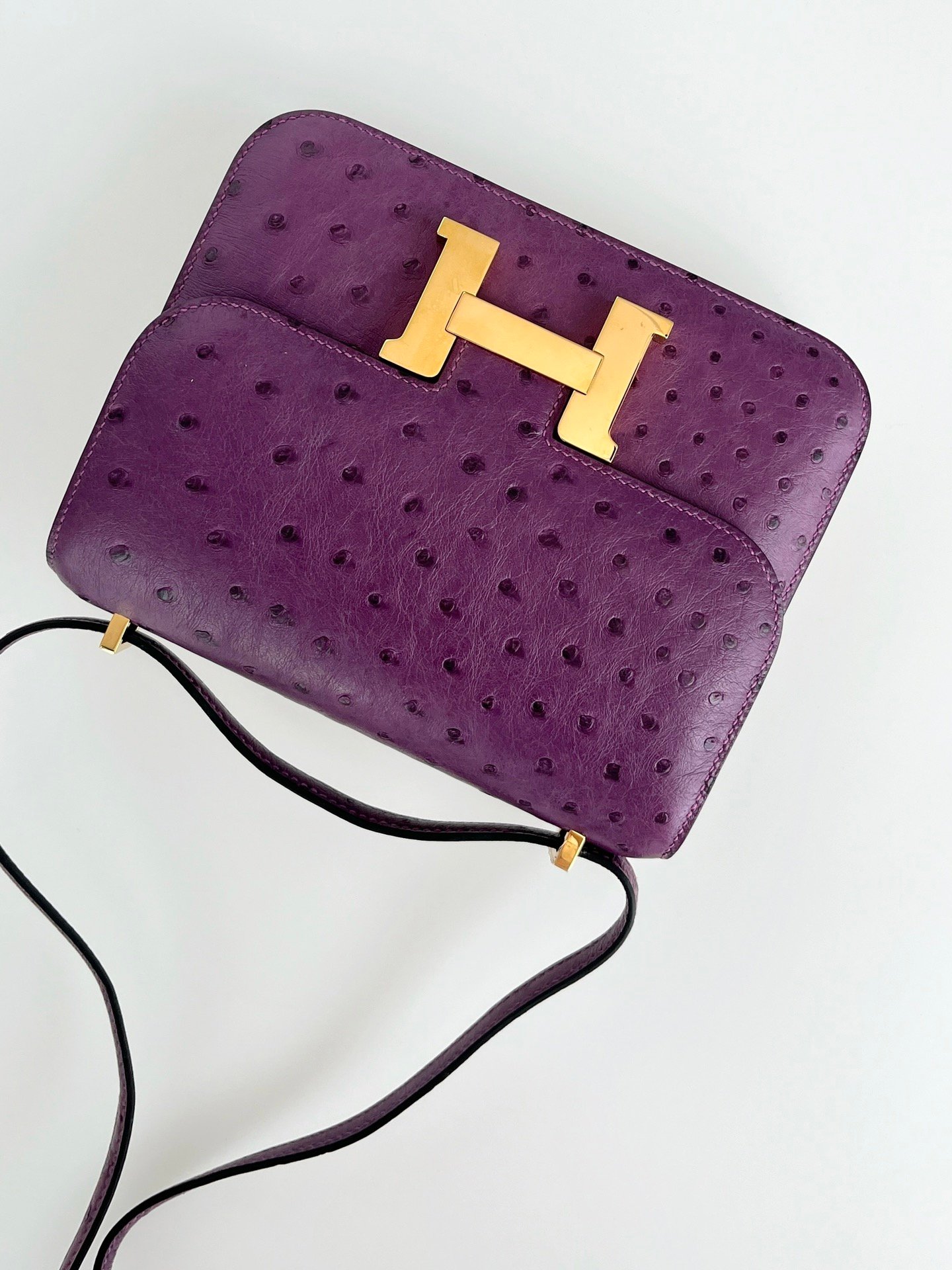 Hermes constance conk 19 anemone purple south african kk ostrich gold buckle, first class hand sewing