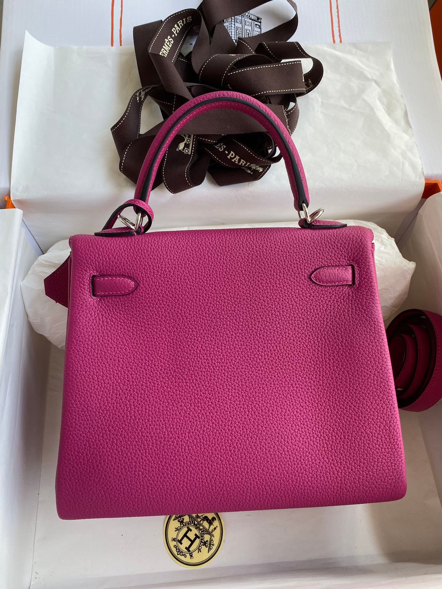 Hermes Customized: Fully hand-stitched👉Kelly 25cm Imported Togo Leather Rose Purple Silver Buckle ✈️✈️