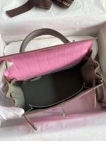 Be the first to review “Hermes Fully hand-stitched 👉Kelly 25cm Imported American Crocodile🐊 Cherry Pink with Pearl Gray and Silver Buckle” Cancel reply