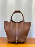 Home BAGS HERMES Hermes Golden Brown original price 2800,n one 9️⃣ off , 2520/pcn two people put together a single 7️⃣. 5️⃣ off , after discount 2200/pcnPicotin Touch 18cm gold and silver buckle in stock Imported TC leather splicing nile matte crocodile leather handmade full waxed thread stitching real shot detail picture ✨