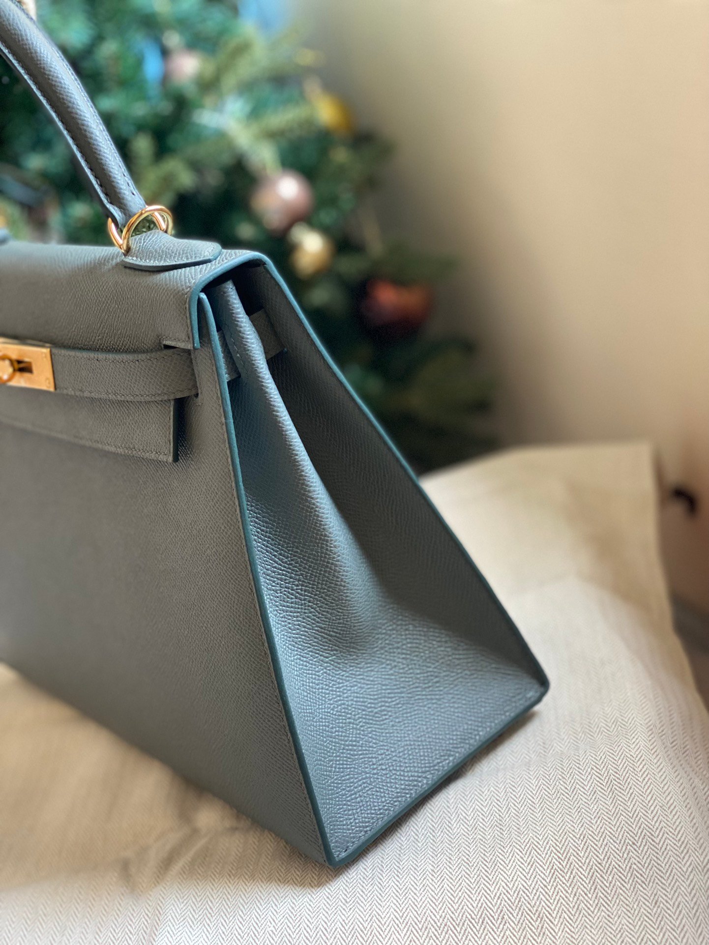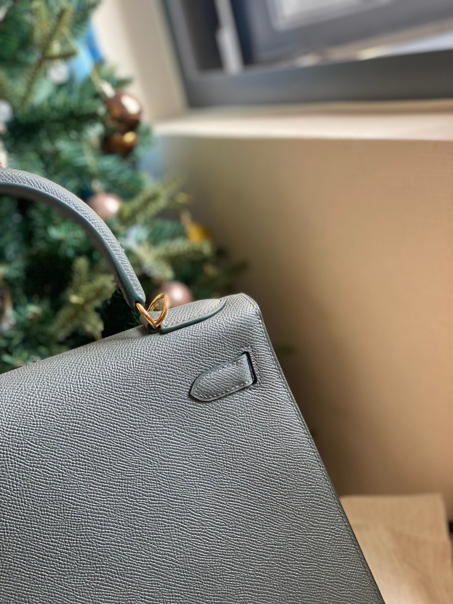 Hermes kelly 28 full hand sewing: nepsom leather almond green gold bucklen neutral color not sweet not salty not greasy just the right tone, gray with green, just the right color and super white!