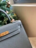 Hermes 🇫🇷nKelly New 24-24cm 29cm nM8 Paris Gray with Gold Buckle