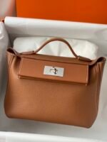 Hermes kelly24-24, 37Gold golden brown, taurillon leather, silver buckle, French craftsmanship, vip senior artisan stitching!