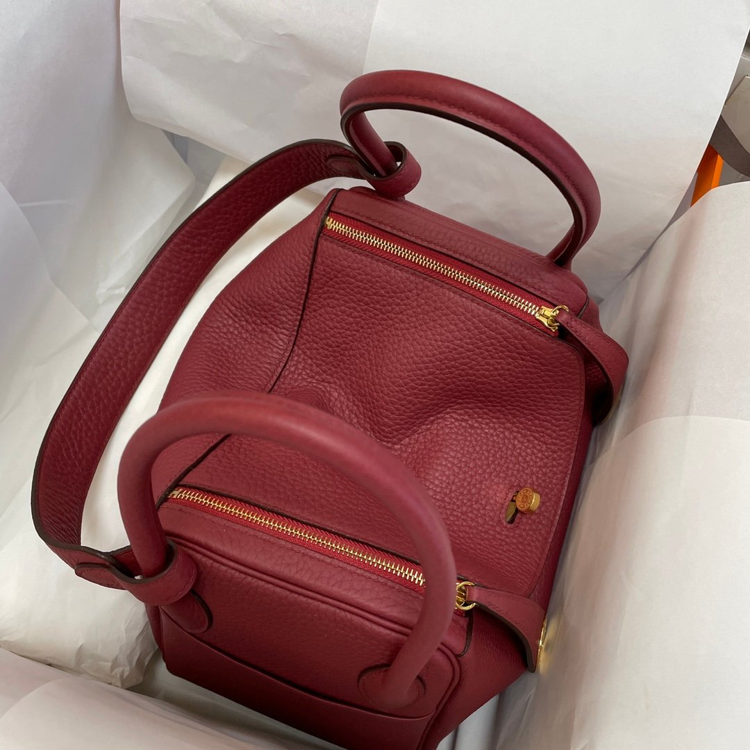 Hermes Lindy26cm gemstone red TC leather full hand sewn gold buckle 😘😘 Atmospheric ruby red [pleasant] [pleasant] Appearing more stable and noble in formal occasions or social activities [victory] [victory] [victory]
