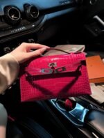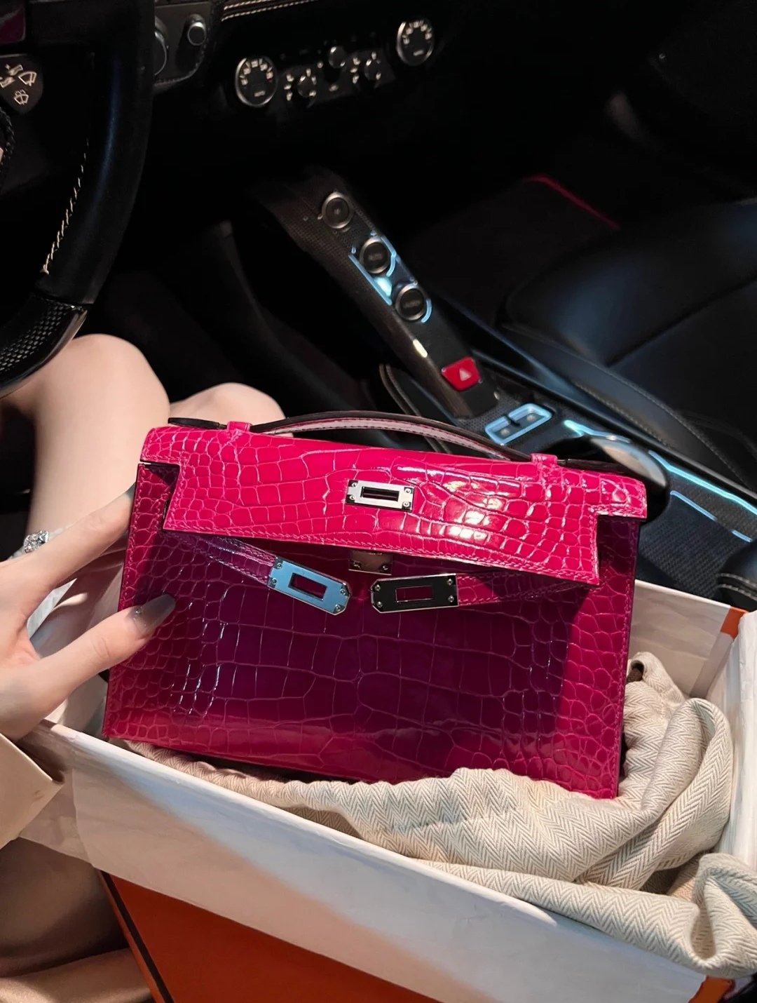 Hermes mini pochette Generation i6 Ultimate Pink/Silver Buckle Glossy American Crocodile, first class hand-stitching