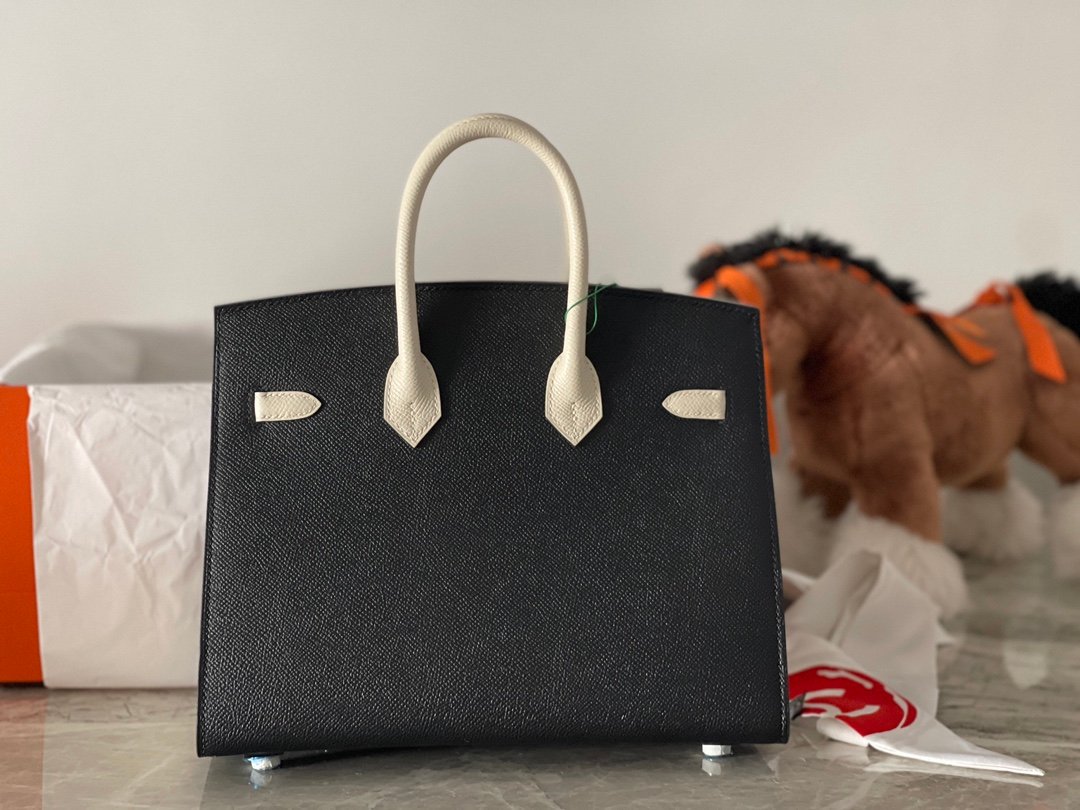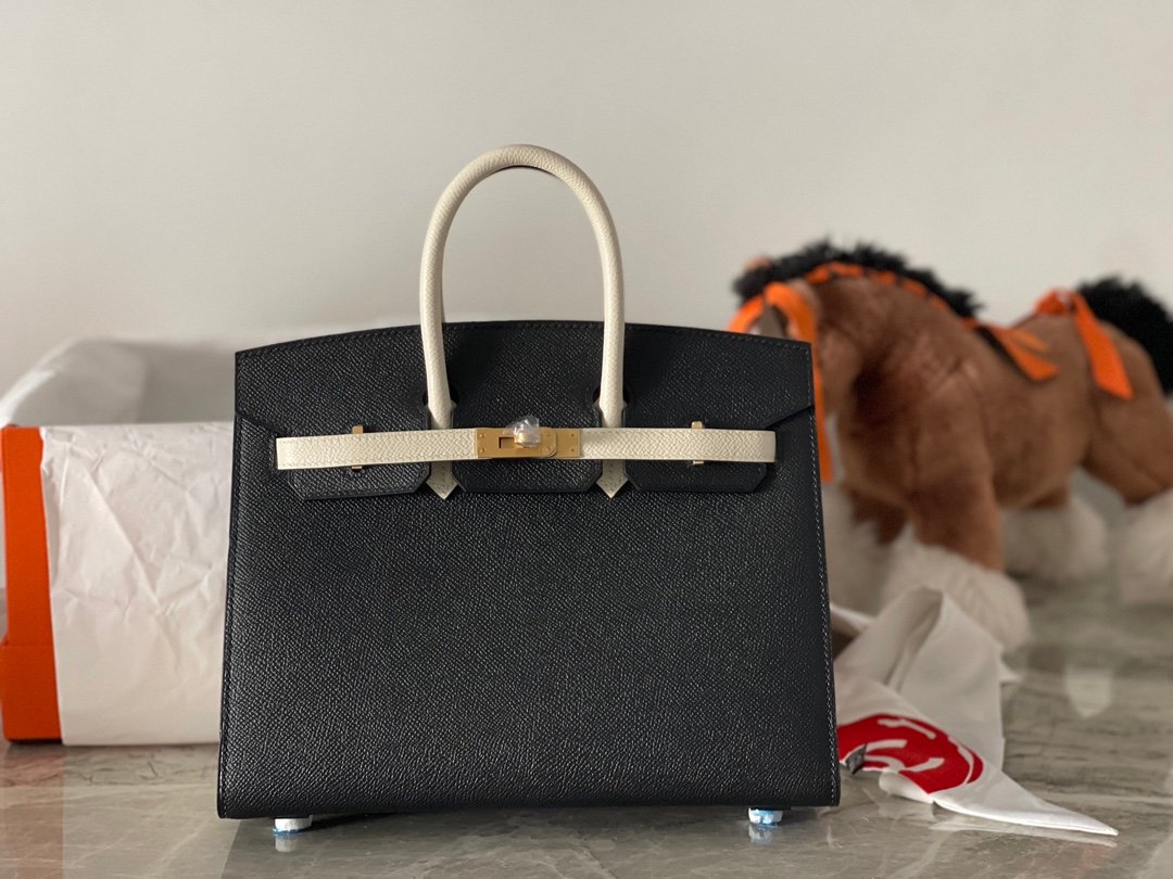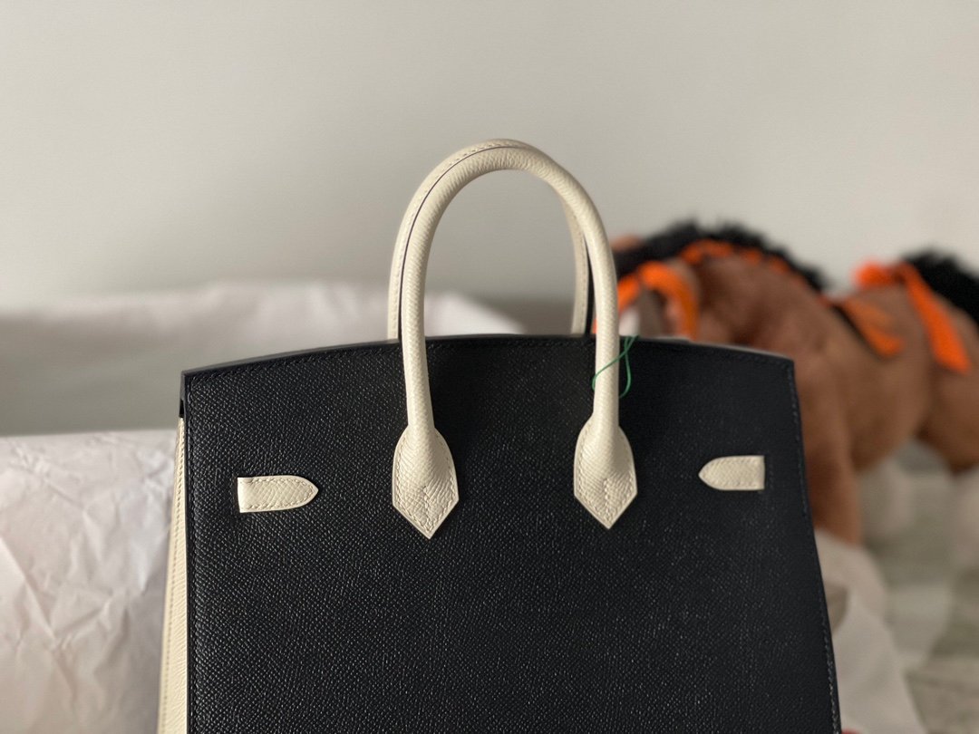 Hermes New in stock 🆕 Colorblocking Black /10 Milkshake White Small Size birkin25cm Outer Sewn Original epsom leather Frosted Gold Buckle Pure Hand Sewn