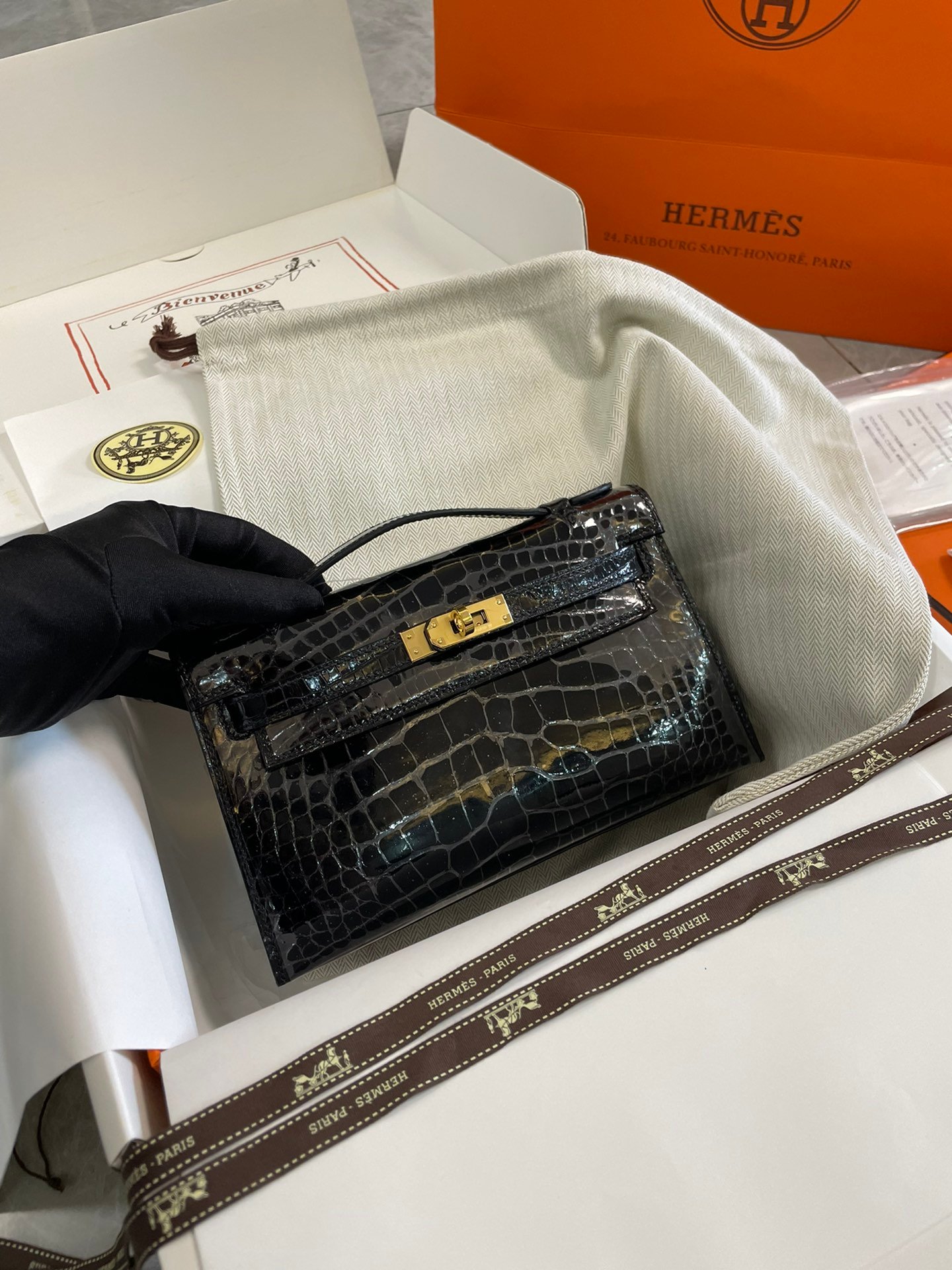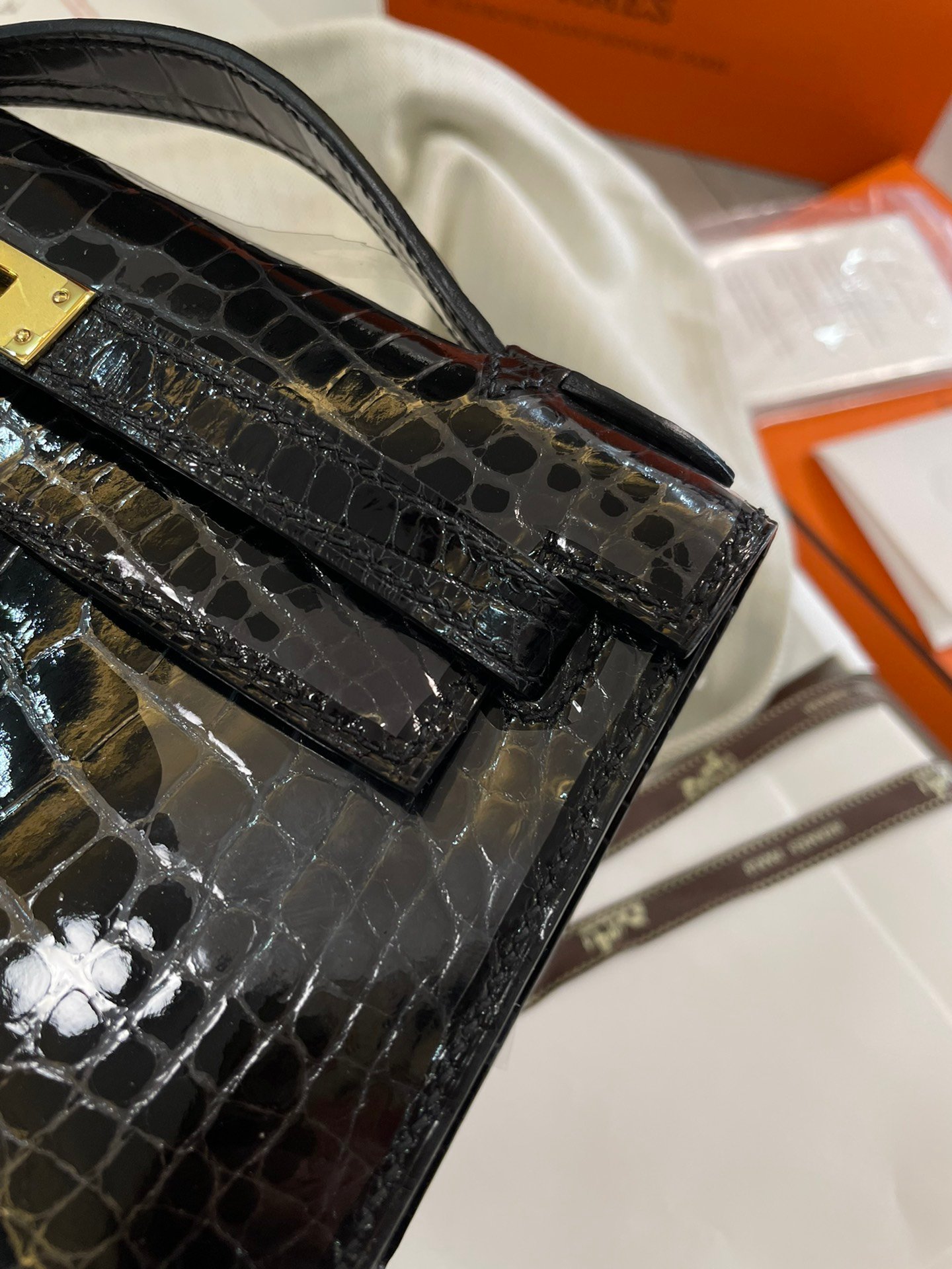 Hermes Real shotn hand-stitchedn American crocodile MiniKelly I 22cm Clutch Bagnncrocodile Imported American crocodile Top craftsmanship French waxed thread hand-stitched top high-end goods Party dinner a fish in the hand The only one who can do it [witty]