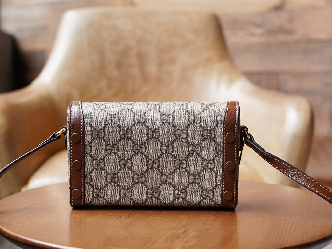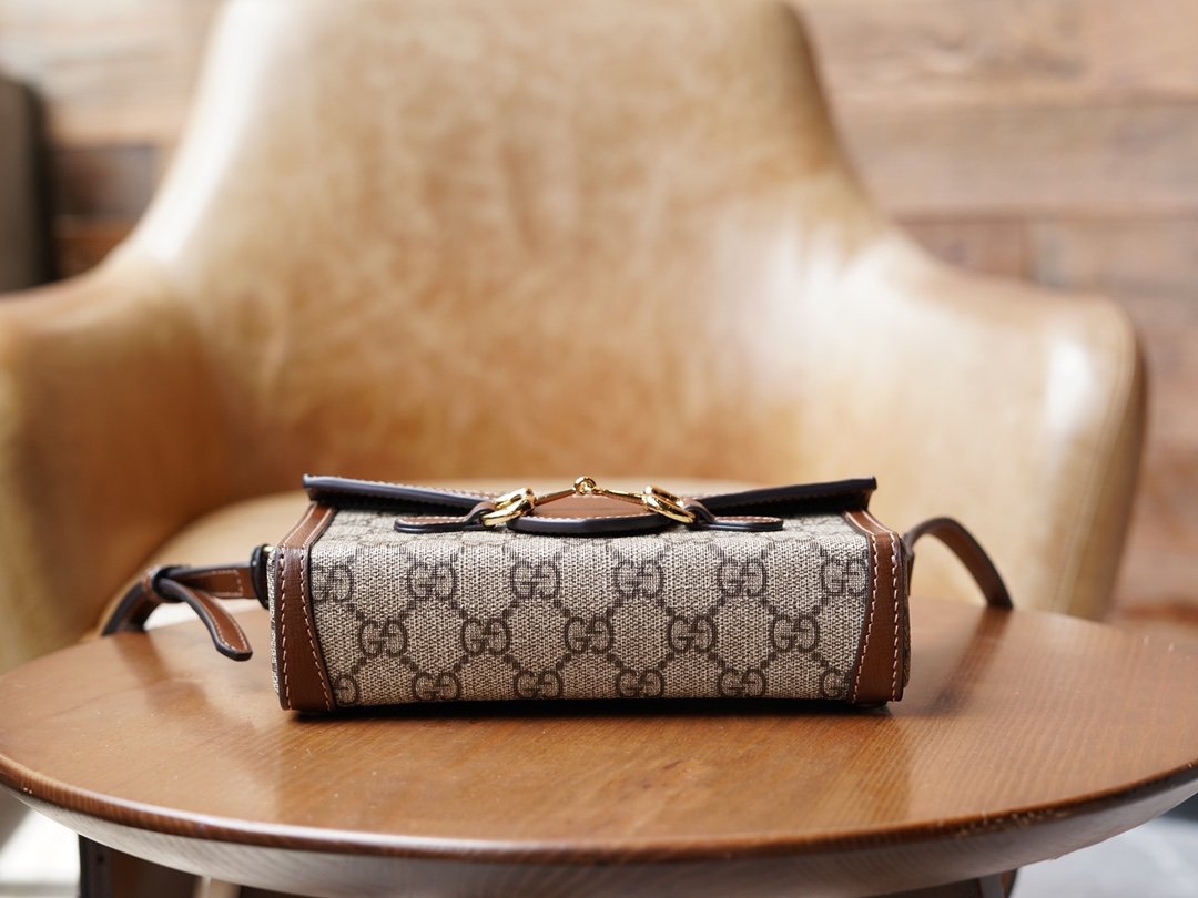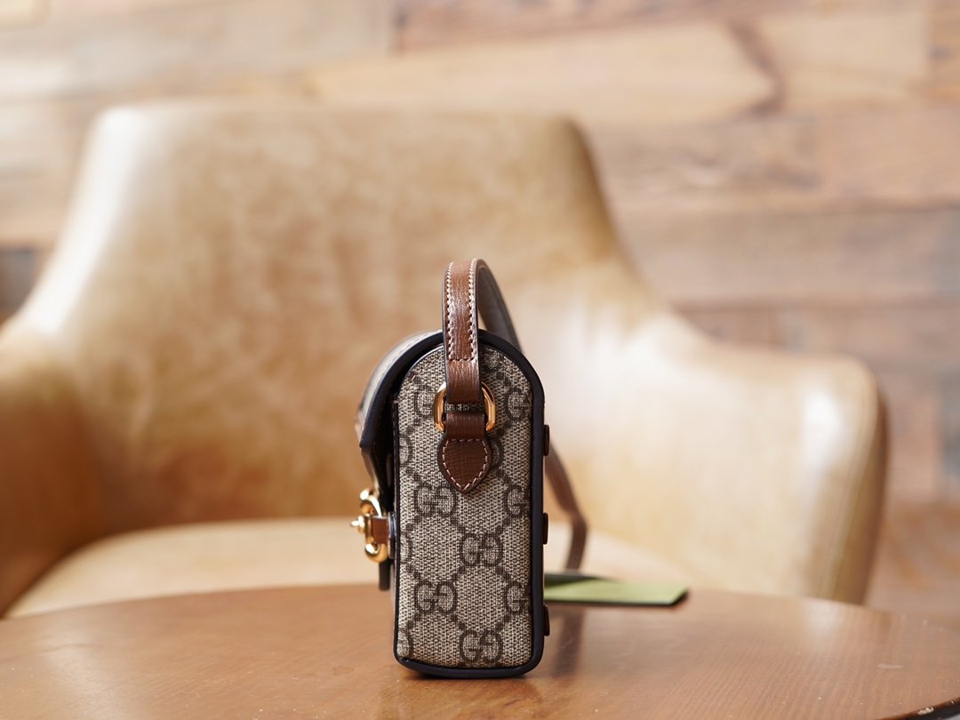 Horsebit 𝟏𝟗𝟓𝟓 Collection Crossbody Cell Phone Bag Brown nn The Love March collection is a refreshed rendition of the brand’s iconic elements in homage to Hollywood’s enduring glamour. This handbag is a masterpiece from the n Horsebit 1955 collection. The classic GG Supreme canvas is presented in beige and ebony, and the miniature shape adds to the eye-catching look of the collection’s iconic accessory. nSize: 18*12*5cmnModel No.: 699296