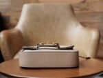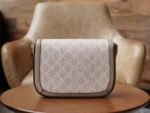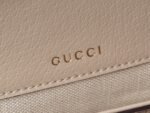 This horsebit 1955 handbag is interpreted in beige and white versions of the iconic fabric, artfully piped in the same color palette. Inspired by the 1930s, the canvas echoes the collection’s stylish retro design concept.