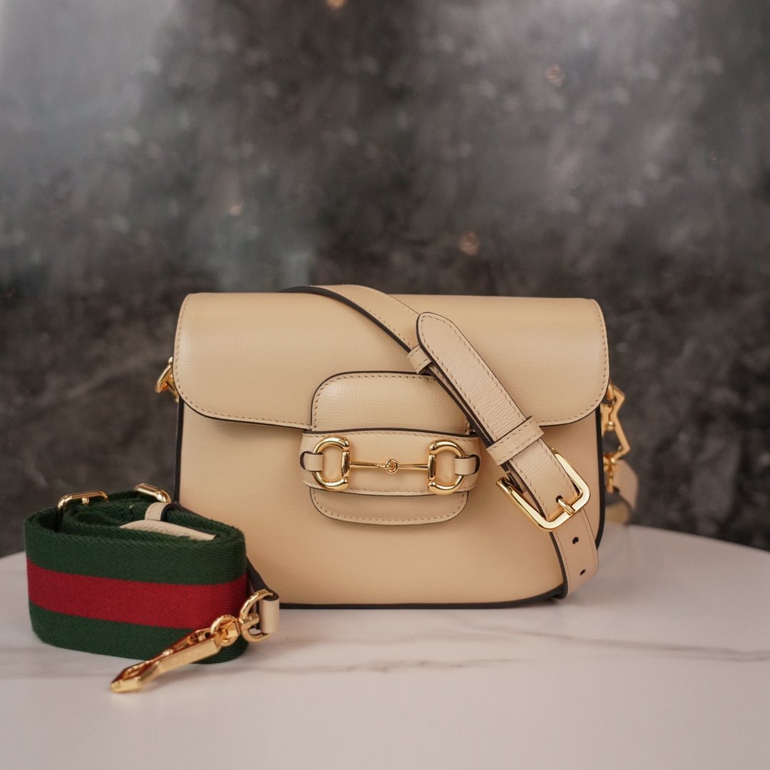 Horsebit ๐Ÿ๐Ÿ—๐Ÿ“๐Ÿ“ Mini Handbag Beige n Removable shoulder straps add a mix-and-match look to this vintage-inspired collection. nThis mini handbag comes with two different straps, one in the same color leather for an understated elegance, and one in red and green webbing for a strong brand identity. The bag is crafted from double G monogrammed canvas with black leather piping. nSize: 20.5*14.5*5cmn๐Ÿ”: 6585730031