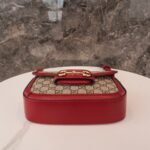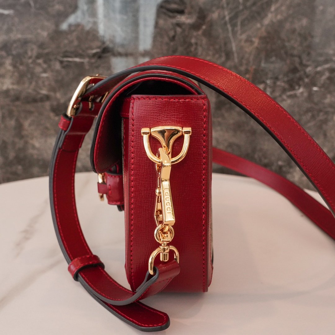 Horsebit ๐Ÿ๐Ÿ—๐Ÿ“๐Ÿ“ Mini Handbag The red nn detachable shoulder straps add a mix-and-match look to this vintage-inspired collection. nThis mini handbag comes with two different straps, one in the same color leather for an understated elegance, and the other in red and green webbing for a strong brand identity. The bag is crafted from double G monogrammed canvas with red leather piping. nSize: 20.5*14.5*5cmnModel No.: 658573