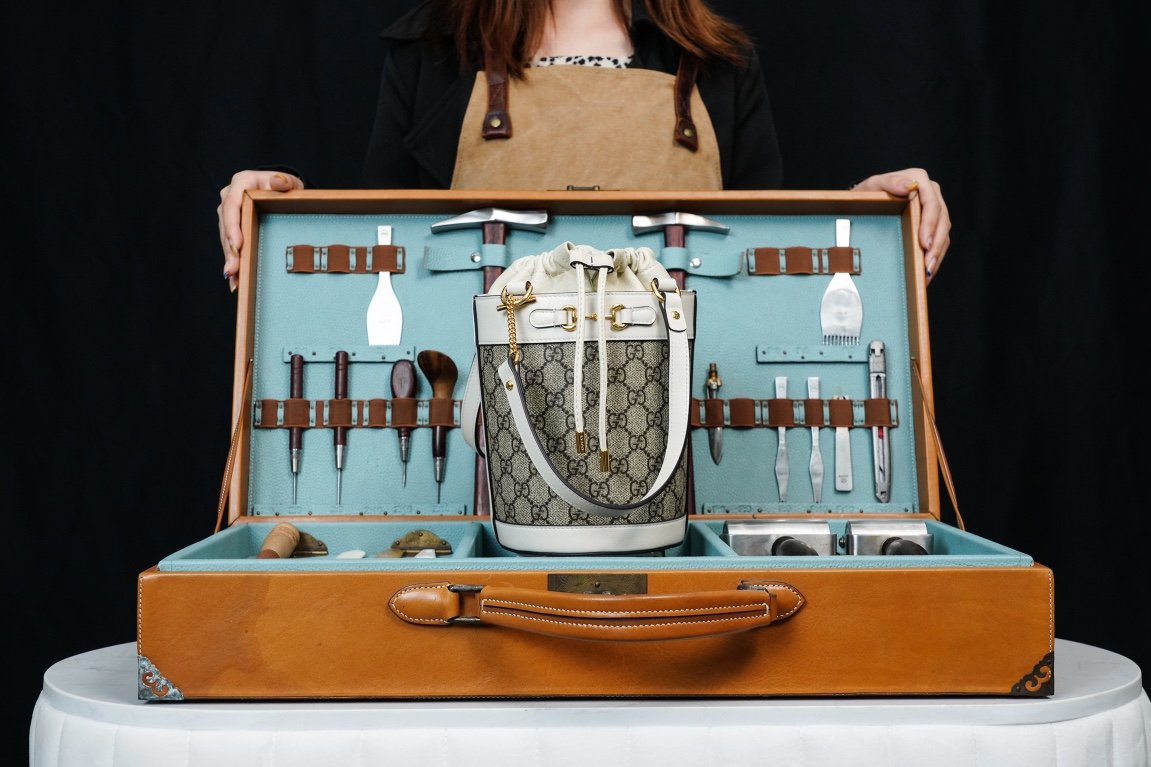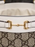 The GG Supreme canvas with white leather and deconstructed drawstring closure, the new rounded bucket bag shape revitalizes the collection. Inspired by the collection’s iconic designs, the collection inherits the design details used on the bags, while injecting a modern twist to the horsebit’s charm. A classic symbol of the G family’s heritage, the horsebit motif of double rings and elongated elements draws inspiration from its equestrian origins and has become a dazzling brand icon.