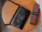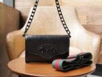 Be the first to review “Horsebit 1955 Chain Envelope Bag Black Mini nnThis Horsebit 1955 handbag comes with two detachable shoulder straps, one with the classic red and green webbing design, and the other with the recognizable Gucc1 chain design, which exemplifies the brand’s philosophy of practical design. The handbag is crafted in black leather and adorned with the collection’s signature horsebit hardware. nSize: 20*12*5.5cmnModel No.: 724713” Cancel reply