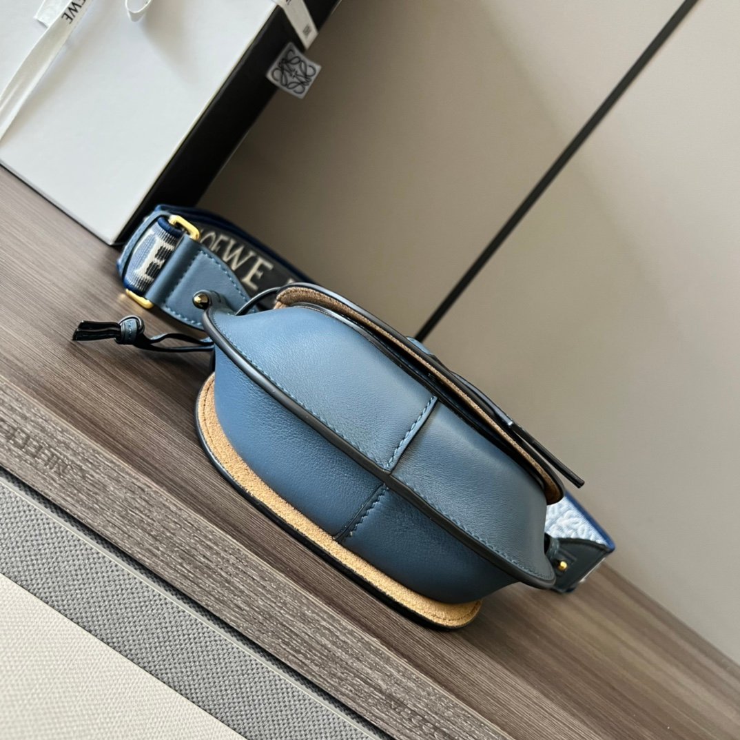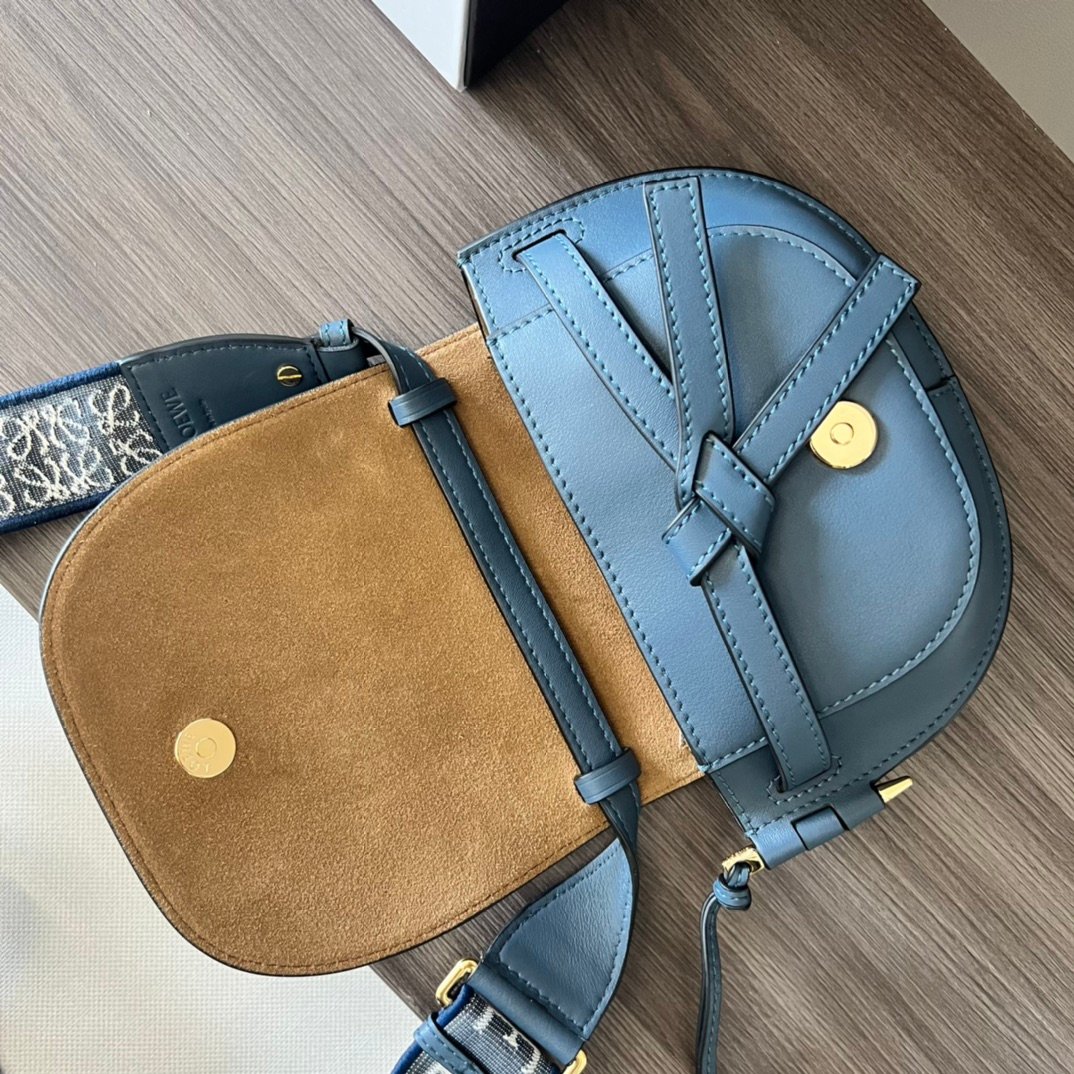 miniGateDual handbag crafted from supple natural cowhide leather showcasing Loewe’s distinctive leather craftsmanship, complete with saddle-stitched, knotted leather strap and Side-locking metal pins, this mini version has a removable cowhide and jacquard shoulder strap! The front flap pull tab sits below the knotted leather strap for secure fastening, with a bonded gold-tone suede lining and two interior slit pocket compartments. Removable shoulder strap* Shoulder, crossbody, chest hanging* 🌟 Embossed with Anagram pattern in the same color scheme 💋